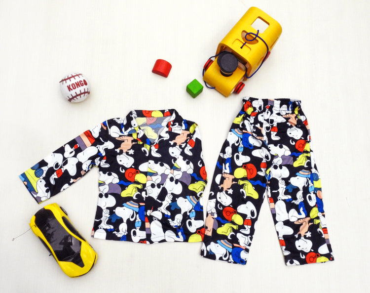 Shop from the cutest range of baby boy night suits for your little one in super soft , quick-dry fabric and latest prints. Don't they just grow up too fast? Check out our unique button roll-up feature in all Pyjamas. Simply, open the pajamas and adjust the new length within seconds with our no-sew button roll-up feature and watch them wear these cute prints a little longer. Don't see your preferred size ?Send us the detailed measurements in the Notes section during checkout and we shall specially customise it for your little one at no extra cost.