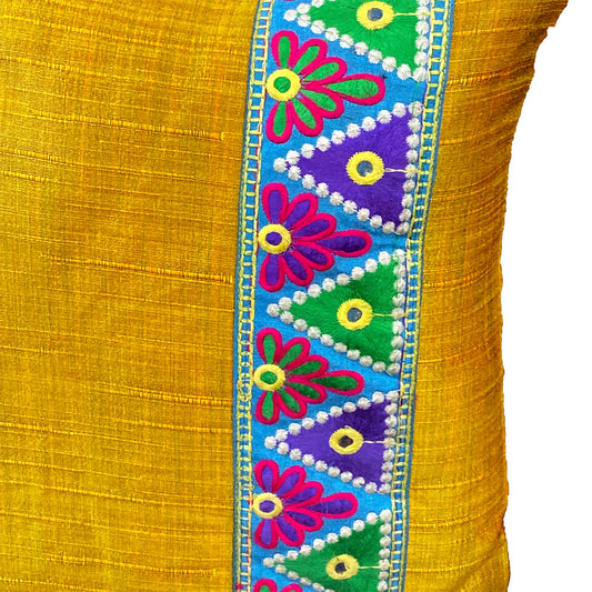 Mustard Yellow Cushion Cover With Delicate Lace Detail