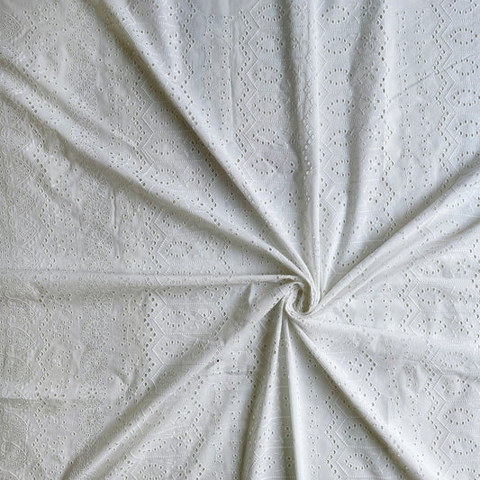 Dyeable White Minimal Hakoba Schiffli Fabric