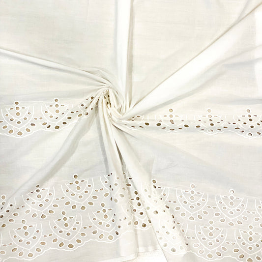 Dyeable Paan Border Cutwork Hakoba Eyelet Fabric