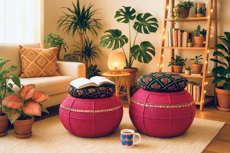 House Party around the corner? Need extra space in your home? You've come to the right place. Browse through our vast collection of eco-friendly bamboo pouffe or Moodas to add instant mobile seating and pops of colour around the house. Choose from the latest designs of handmade bamboo furniture made in India directly brought to you from the uber talented craftsmen of India. Shop local and get 15% OFF on FIRST Purchase.