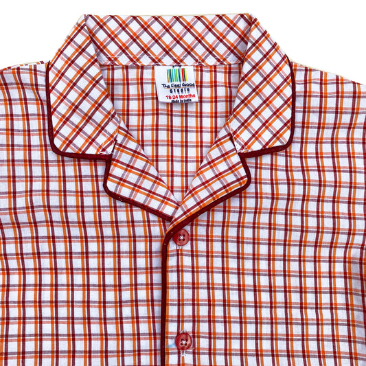 Maroon & Orange Checkered Boys Cotton Night Suit