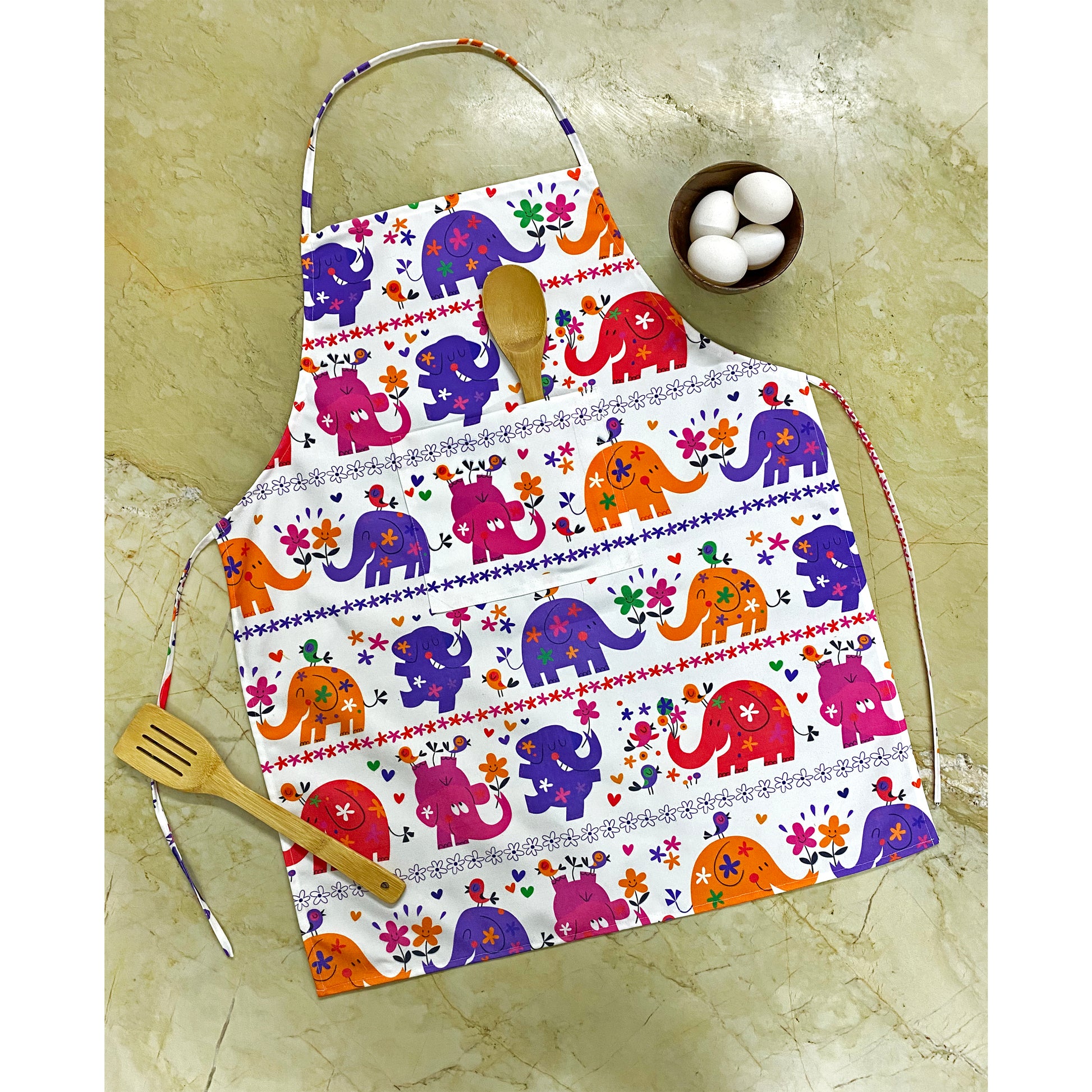 Baby Elephant print cute apron in quick dry polycotton fabric for the one who puts food on the table for everyone. This happy apron comes with a practical front pocket and is easy to wash. Now whip your favourite dishes in an easy, fuss free way without worrying about the stains or laundry blues. Happy Cooking!