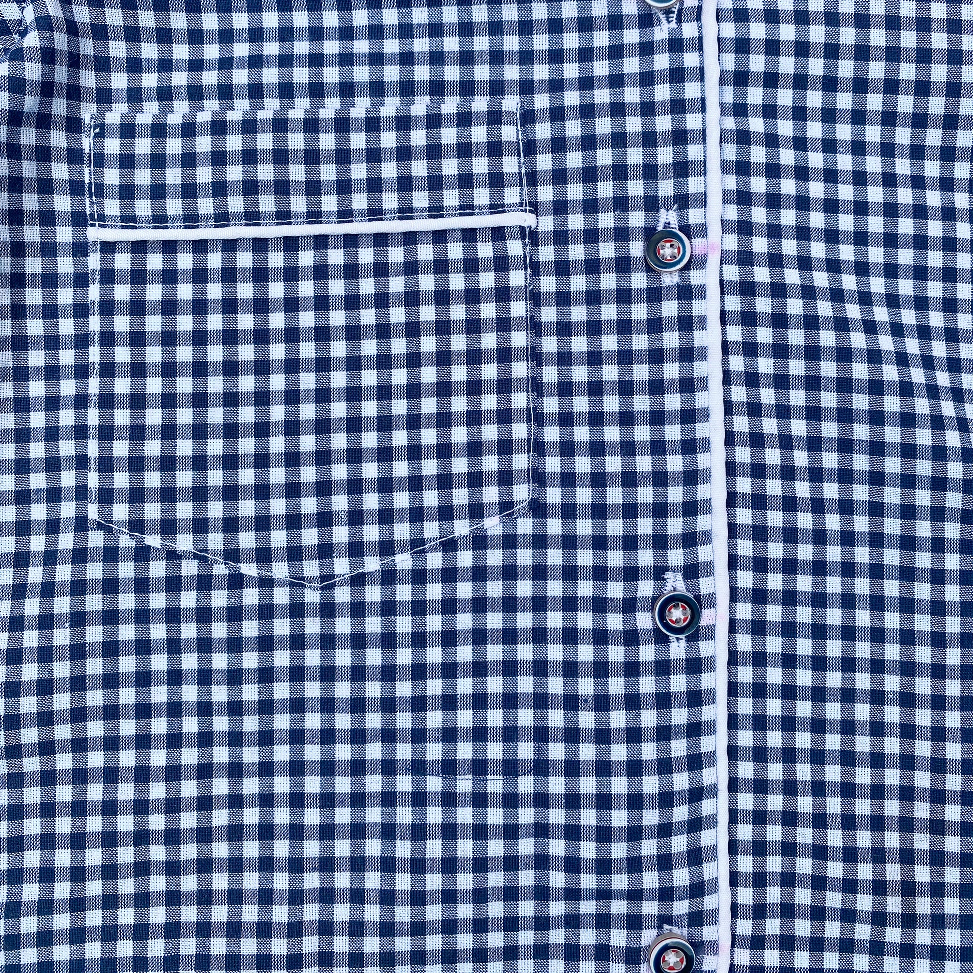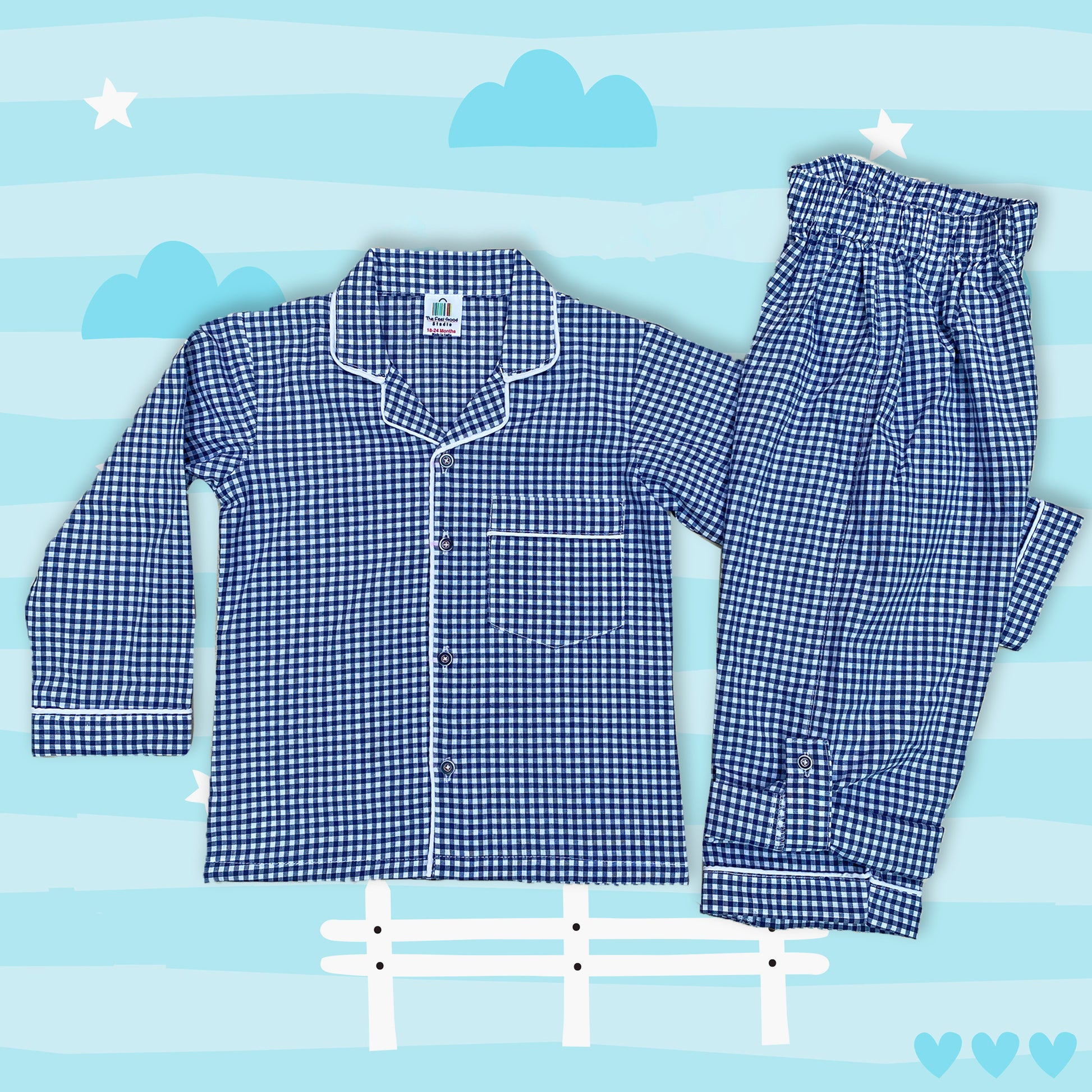 Classic Blue and white checkered baby girls night suit on softest cotton fabric. It comes with a practical button roll up feature in all pajamas till the age of 5 which helps in effectively adjusting the length of the bottoms for a couple of years without worrying about them growing up too fast.