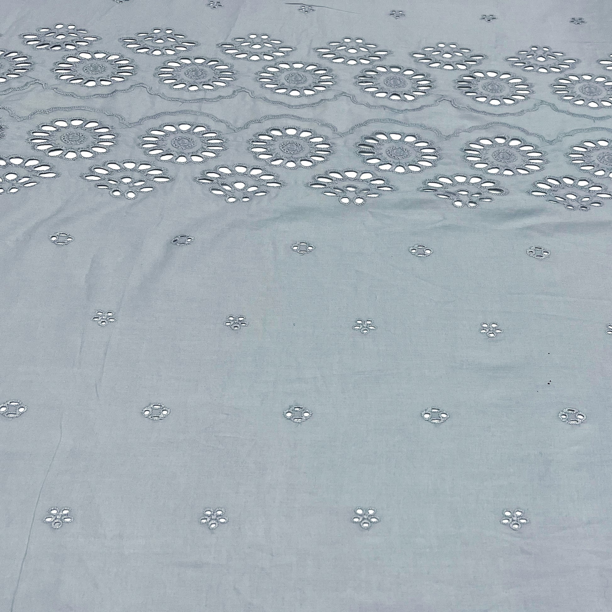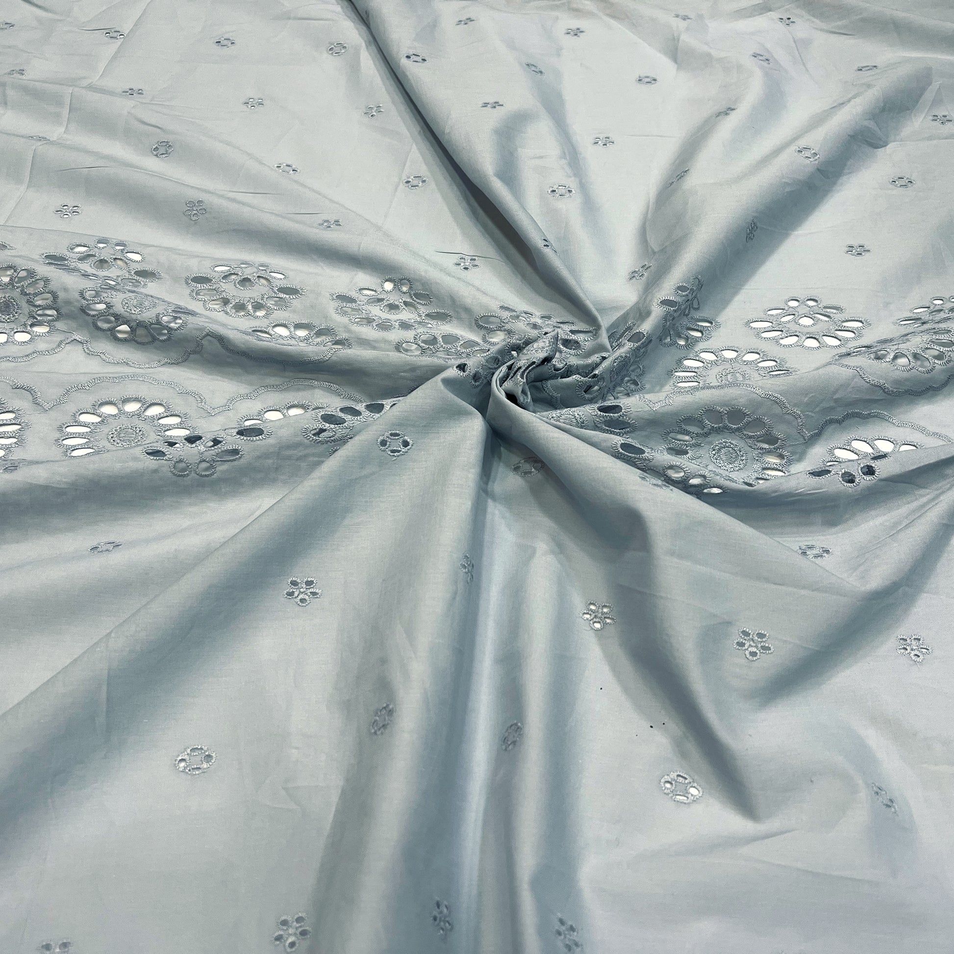 Premium bluish grey hakoba eyelet fabric for beautiful kurtas, chic salwar pants, regal upholstery and much more.