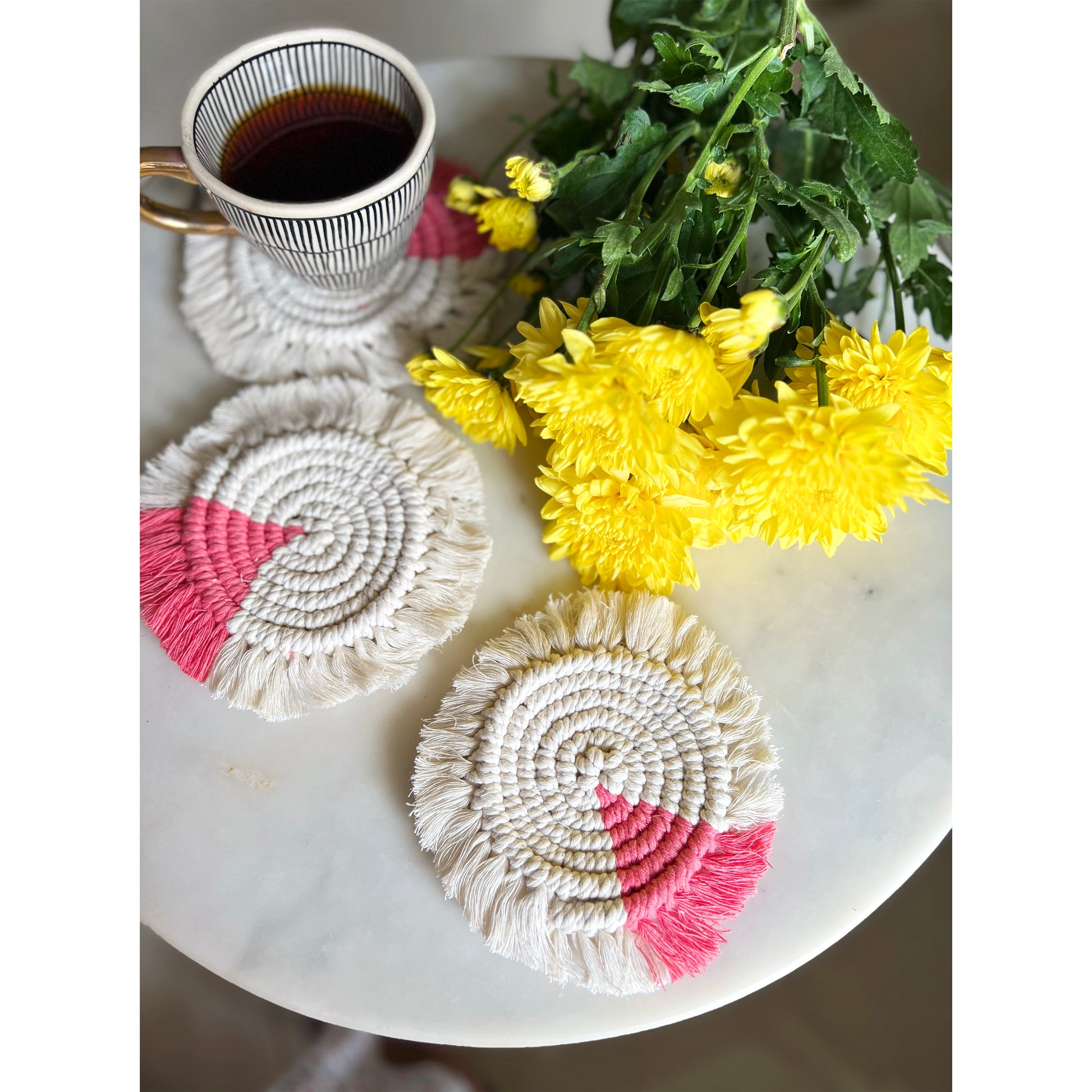 Beautiful handwoven macrame coasters for home and office oozing the quintessential boho vibes.