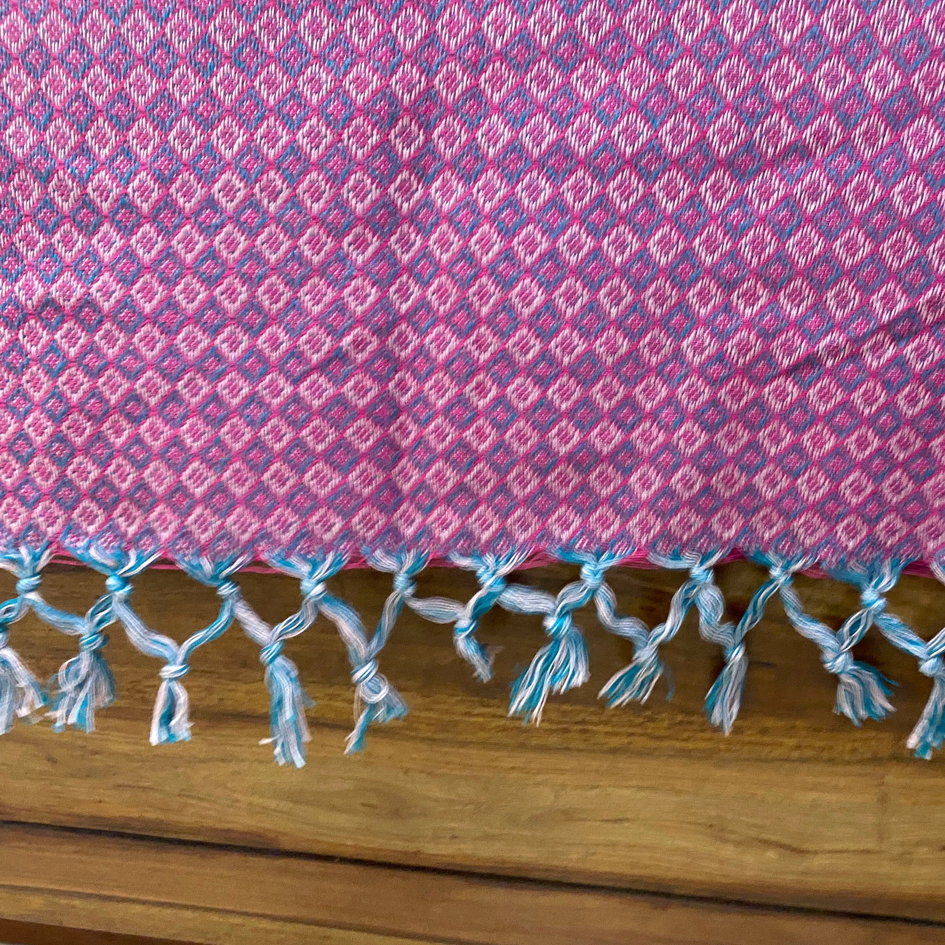 Unveil the magic of Indian craftsmanship with our unique reversible double bed cover. Immerse yourself in the intricate weave and the delightful hues of pink and turquoise. This isn't just a king size bed cover, it's a work of art, handcrafted to perfection, designed to elevate your cosy space.