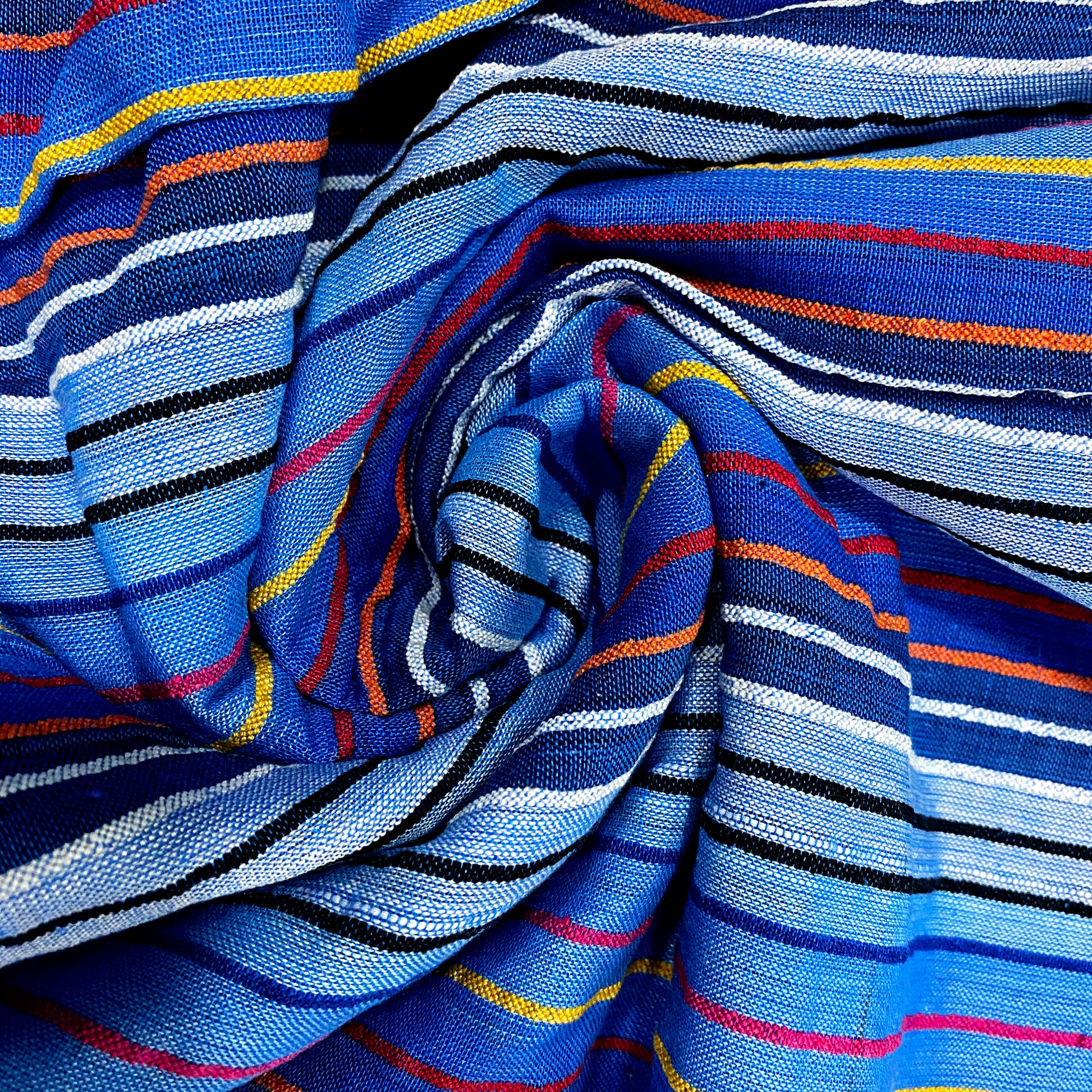Blue Colourful Thin Stripes Cotton Fabric