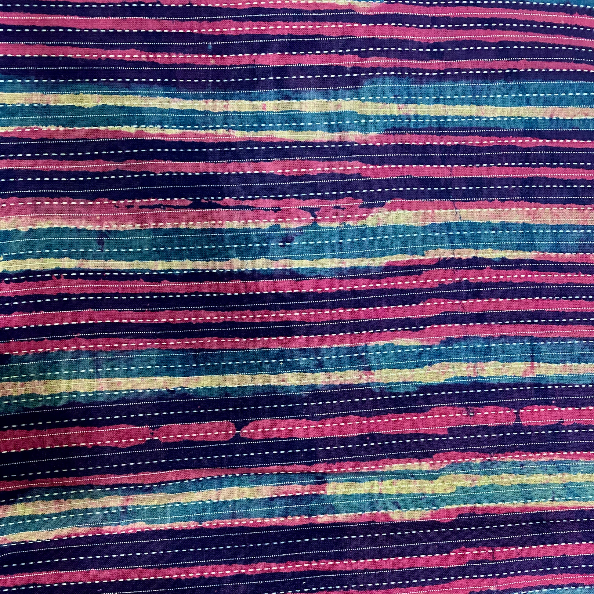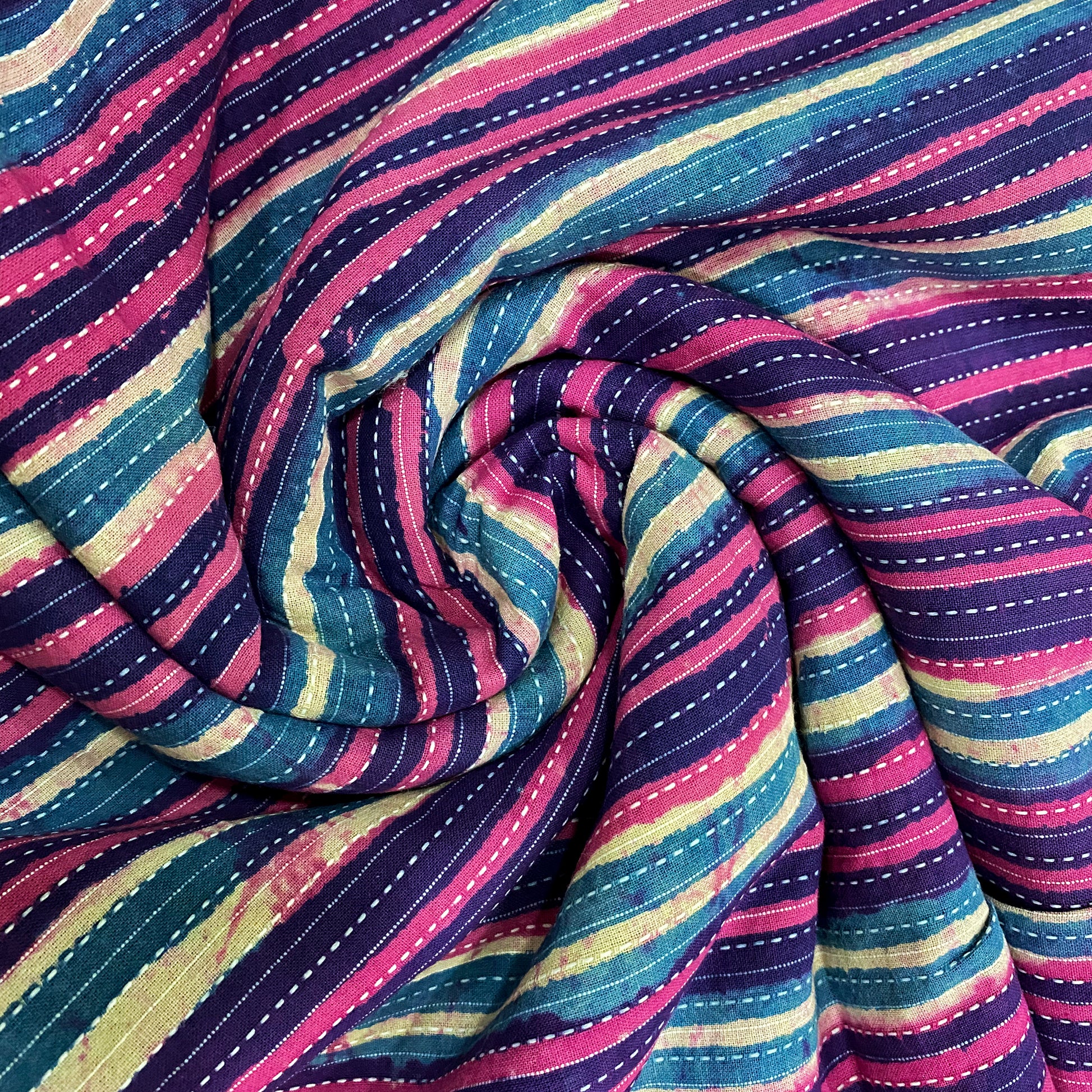 Pretty and feminine thin stripes cotton fabric in pink and blue tone; perfect for cotton pants . Use it in combination with a floral print in the same tone and create a designer piece for yourself.