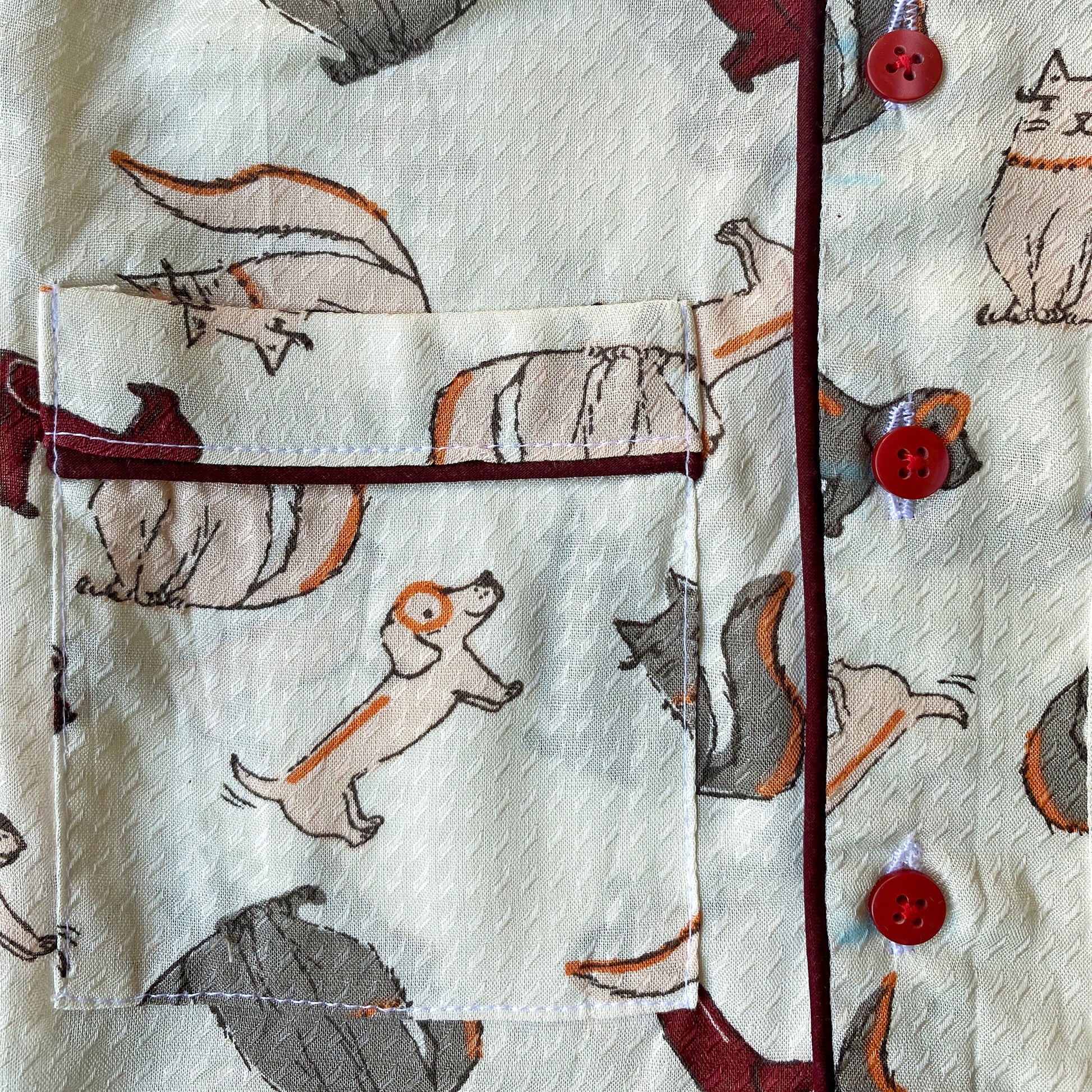 Cutest dog and cat print baby girl night suit on softest rayon fabric. It comes with a practical button roll up feature in all pajamas till the age of 5 which helps in effectively adjusting the length of the bottoms for a couple of years without worrying about them growing up too fast.