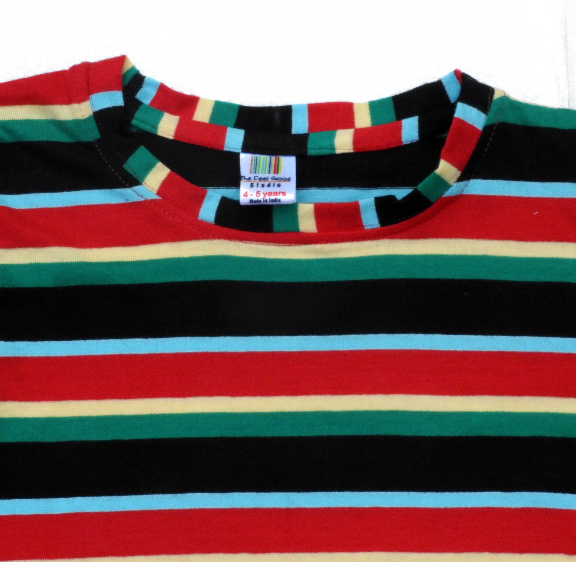 Winter Jersey For Kids in Gentle Premium Cotton . This jersey has a standard round neck and comes in a striking colour combination of red, yellow, black and green.