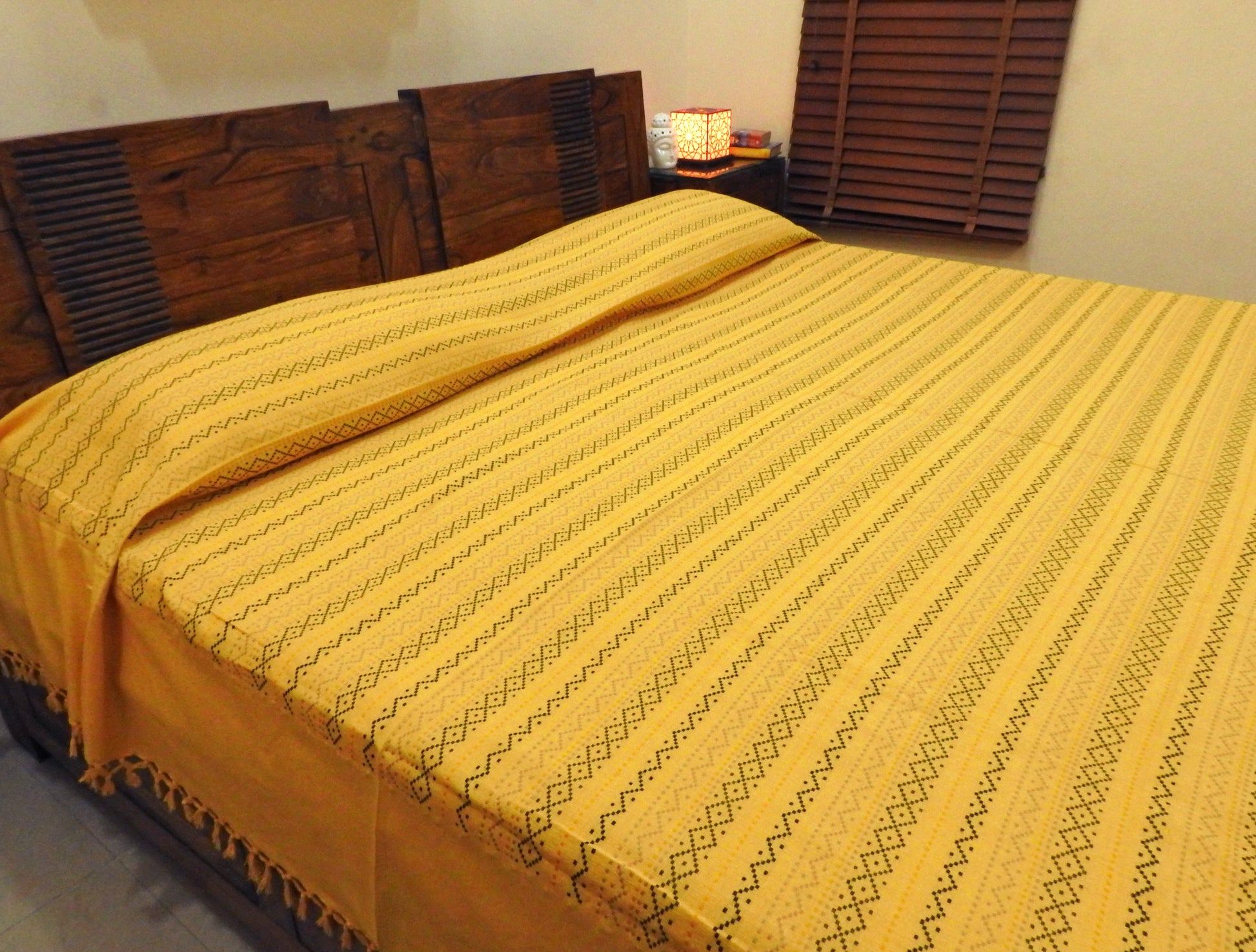 A beautiful Indie bed cover in golden yellow; perfect to create a cosy vibe in your bedroom. Buy it for yourself or give it as a great utility gift to your loved ones.