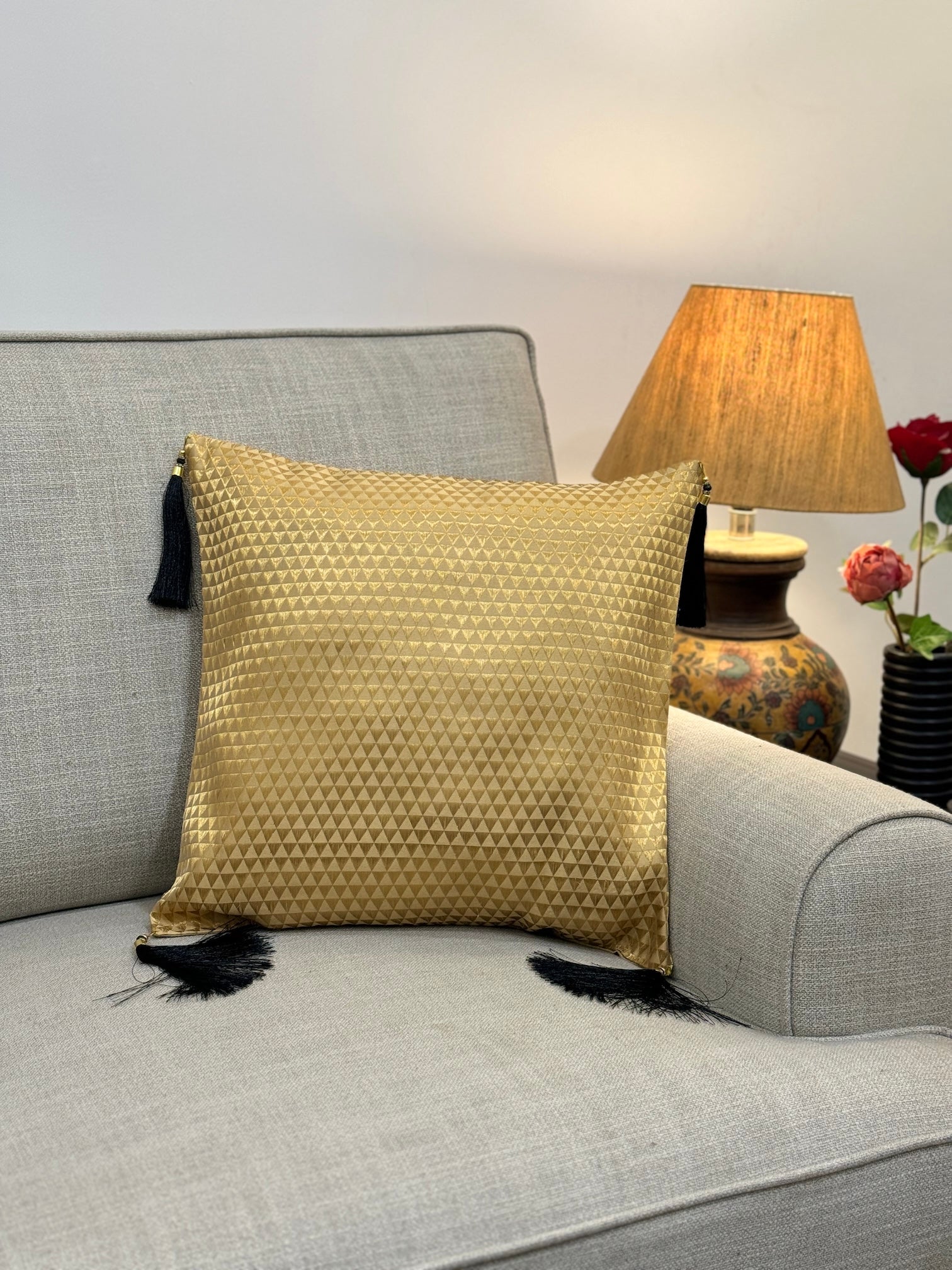 Make a bold statement with our classy gold cushion covers, designed to elevate your sofa and diwan. Crafted with a luxurious finish, these covers exude elegance and sophistication, perfect for creating a regal ambiance. Their timeless appeal and rich gold hue add a touch of glamour to any seating arrangement, making them the ideal choice for a refined, stylish home.