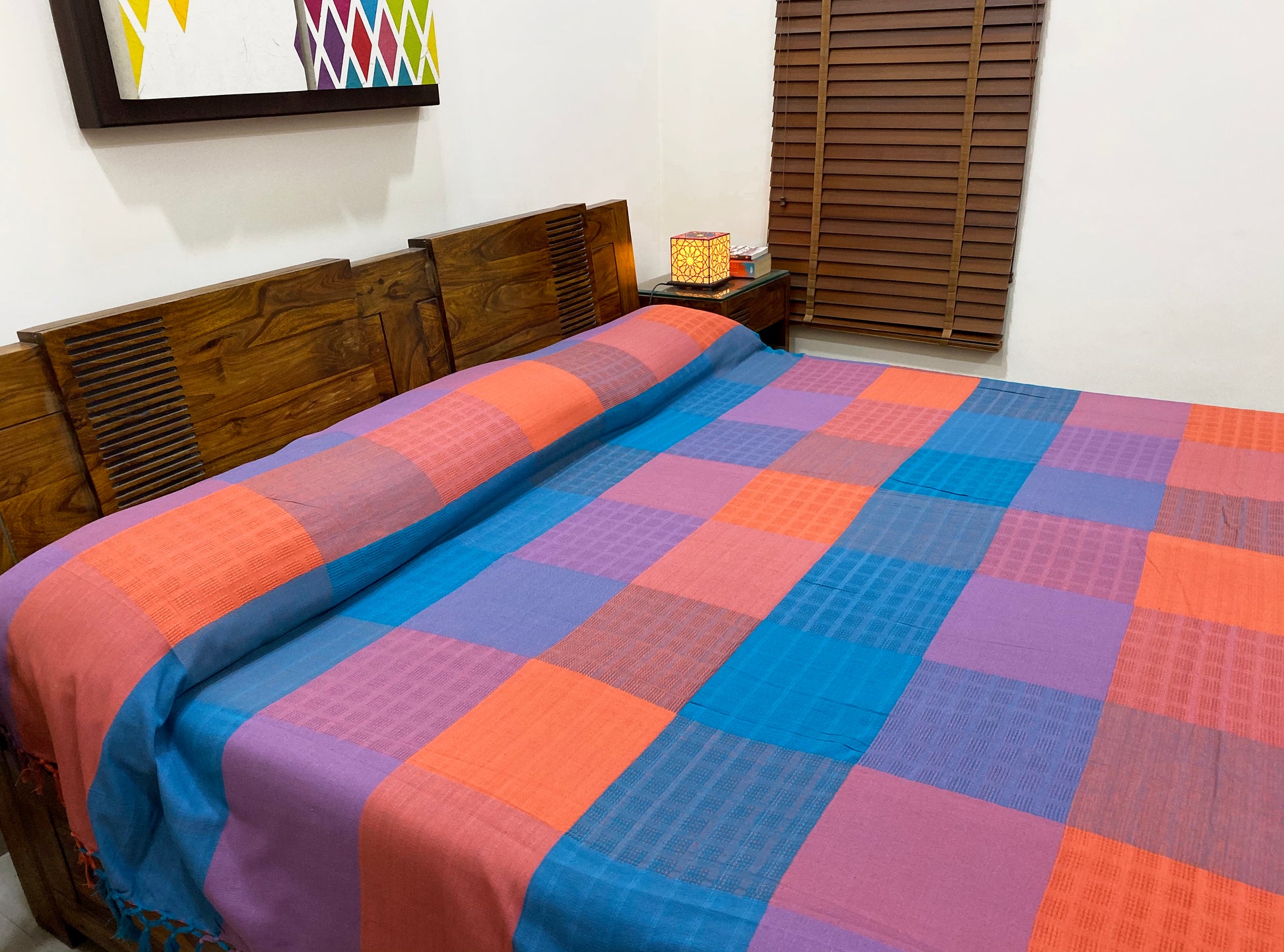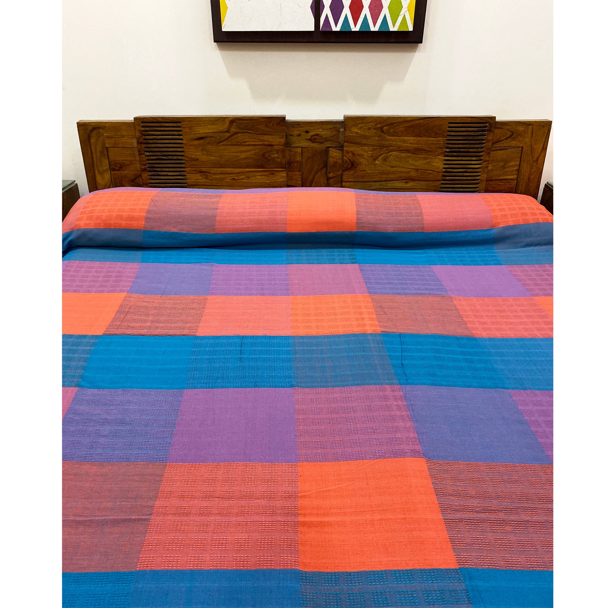 A trendy cotton bed cover in vibrant happy colour combination. Buy it for yourself or give it as a great utility gift to a loved one. Get 15% OFF on First Purchase.