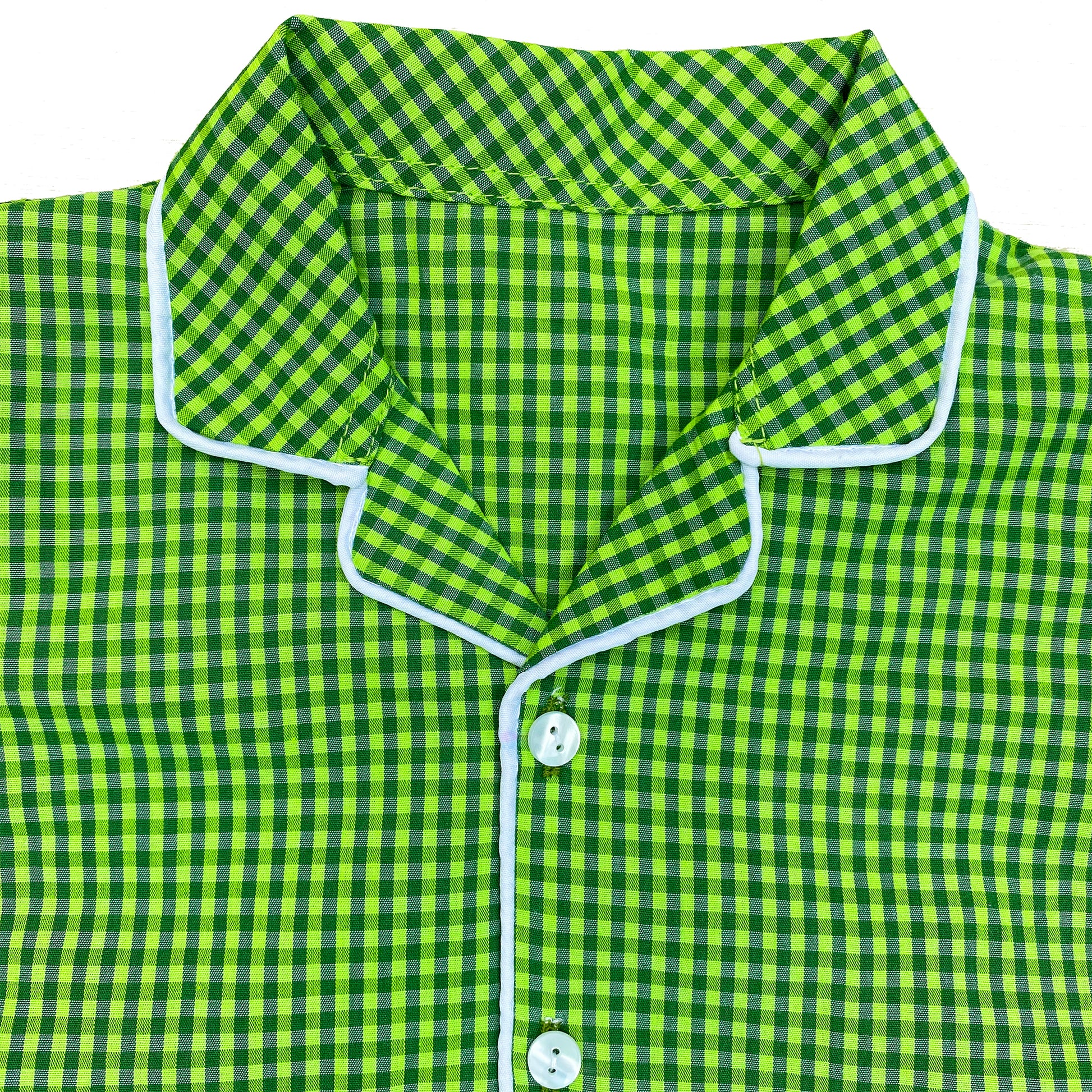 Green Checkered print night suit on softest cotton fabric. It comes with a practical button roll up feature in all pajamas till the age of 5 which helps in effectively adjusting the length of the bottoms for a couple of years without worrying about them growing up too fast.