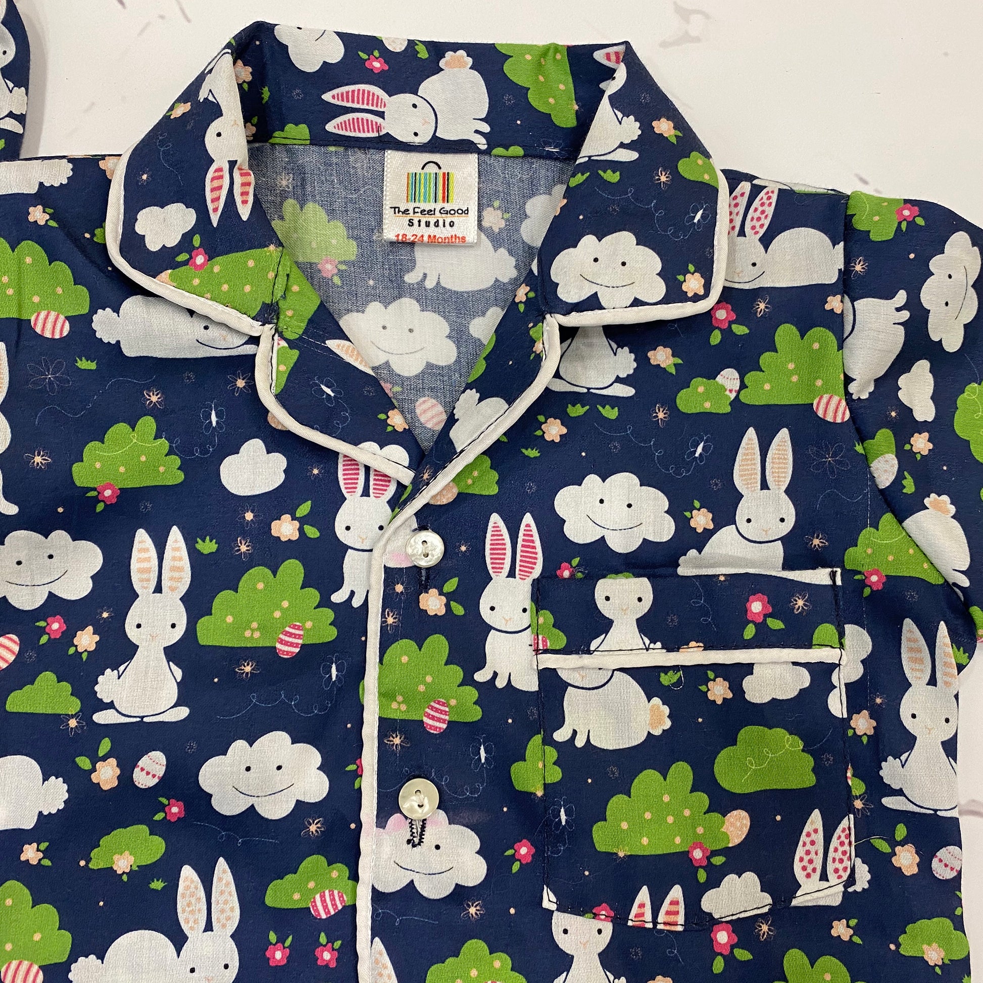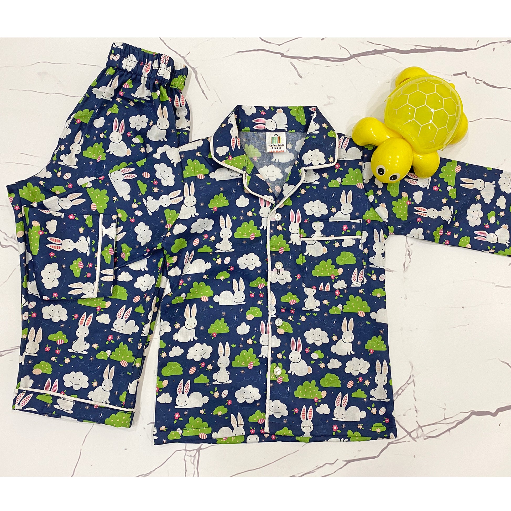Cutest Rabbit Print Soft Rayon Cotton Night Suit For Boys. It comes with a practical button roll up feature in all pajamas till the age of 5 which helps in effectively adjusting the length of pajamas without worrying about them growing up too fast.
