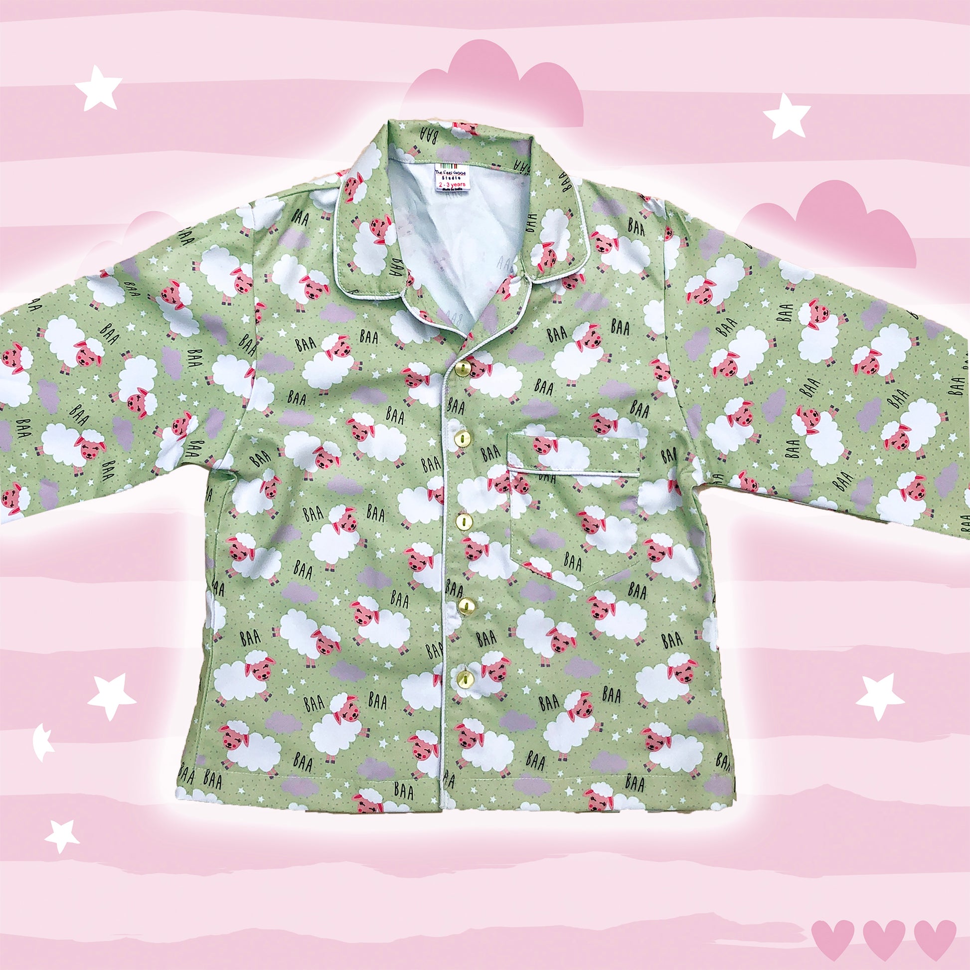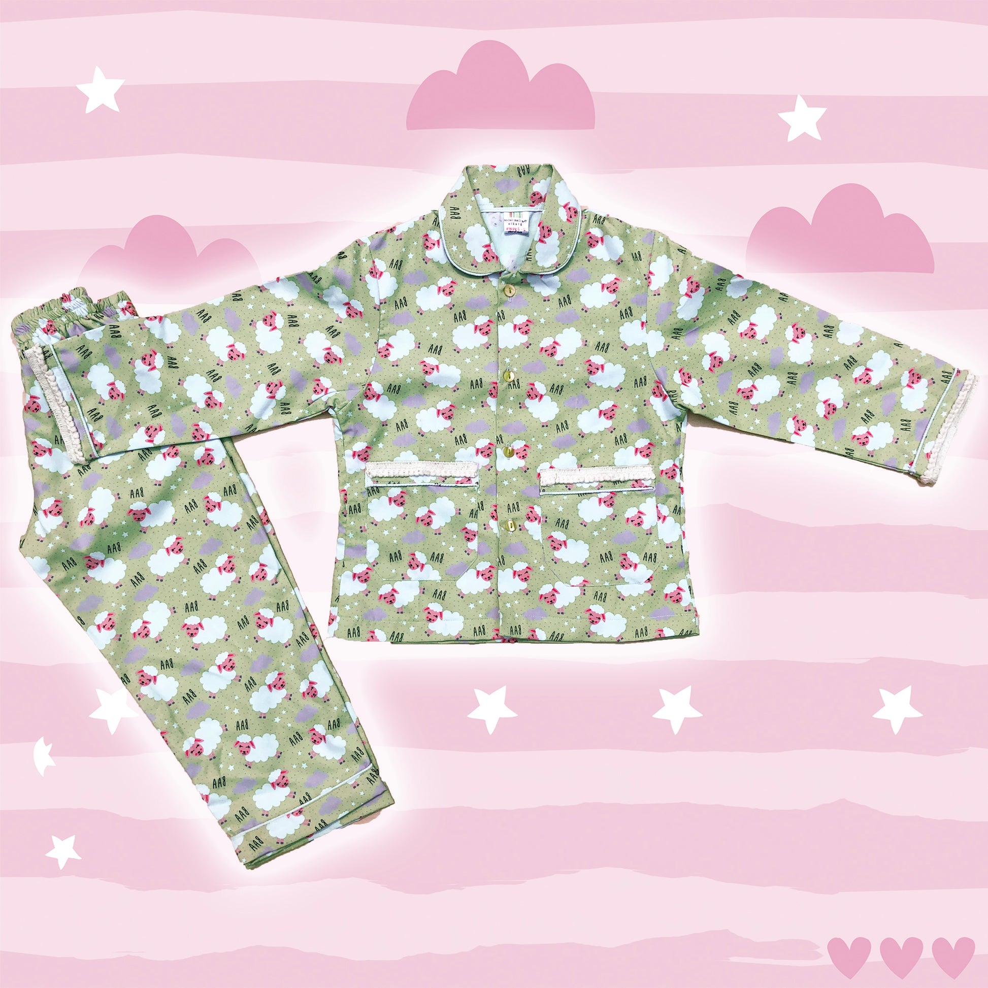 Cute sheep print night suit on light cotton in soft and quick dry butter cotton fabric.This fabric does not stick to the skin and needs no ironing. The night suit comes with a practical button roll up feature in all pajamas till the age of 5 years.