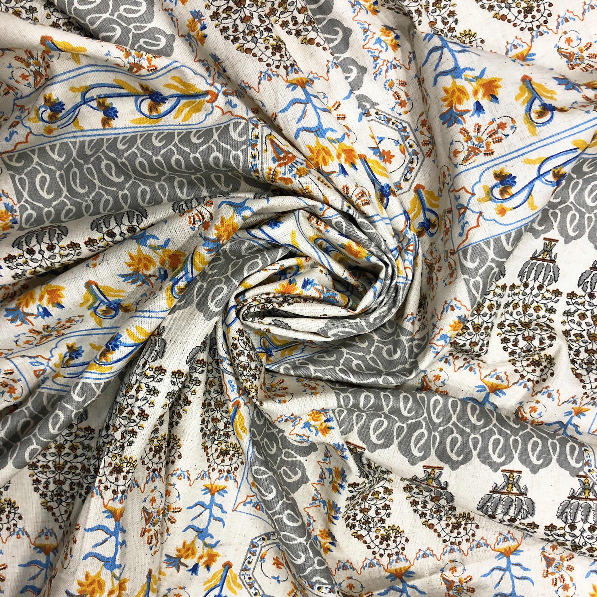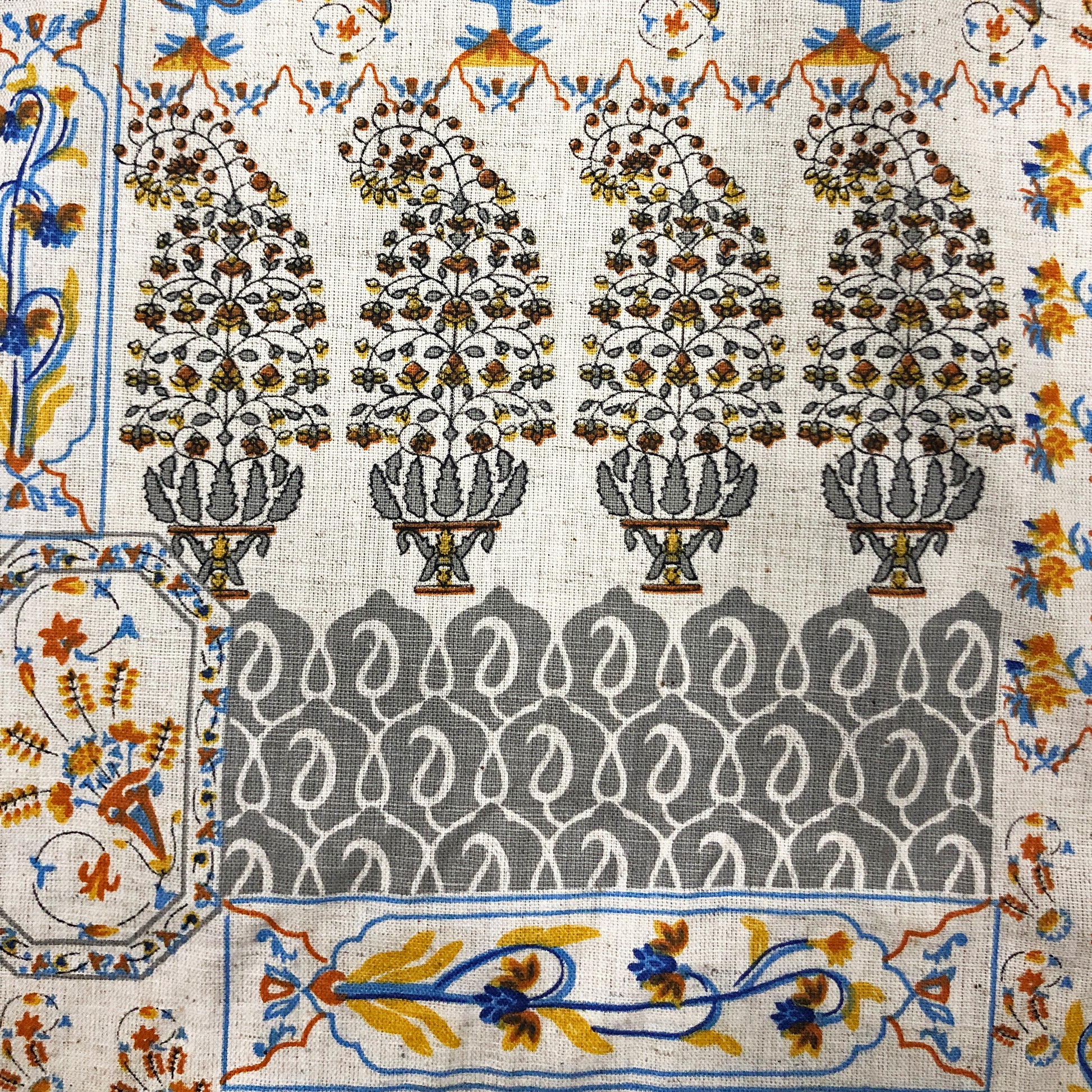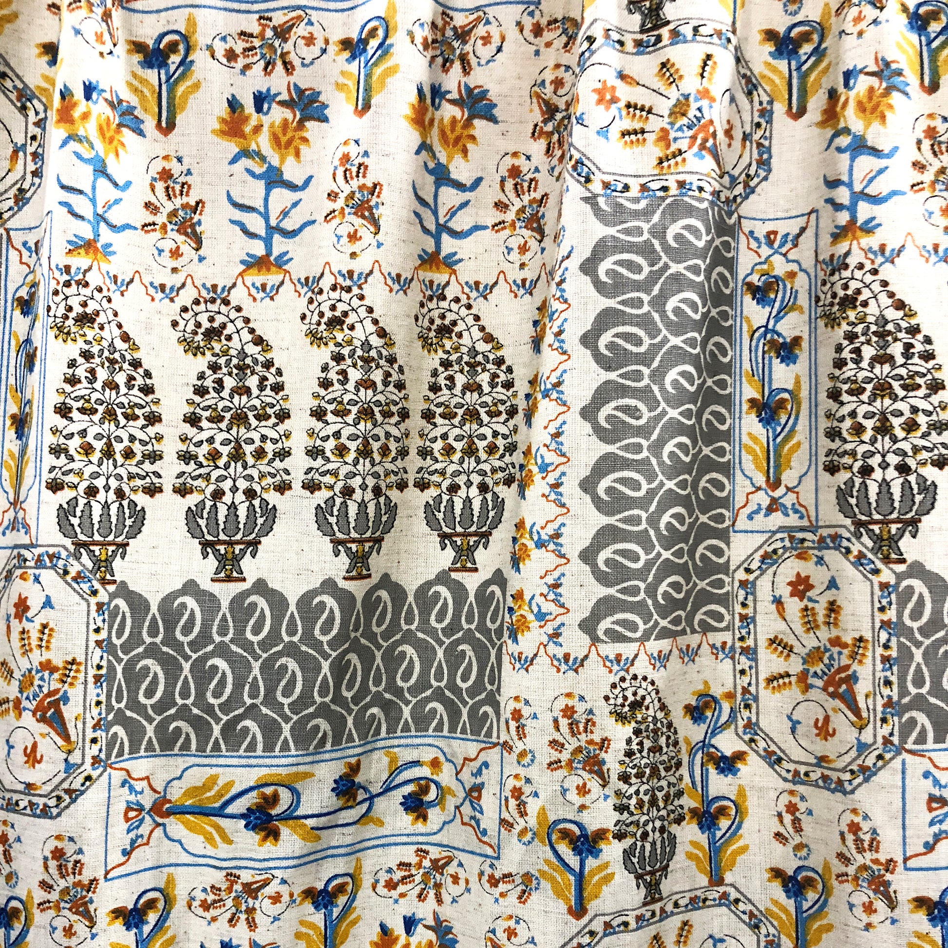 A beautiful Indian traditional folk print in handspun cotton fabric, handcrafted in India. Make a chic summer dress out of it or a beautiful kurta with palazzos or wherever your imagination takes you.