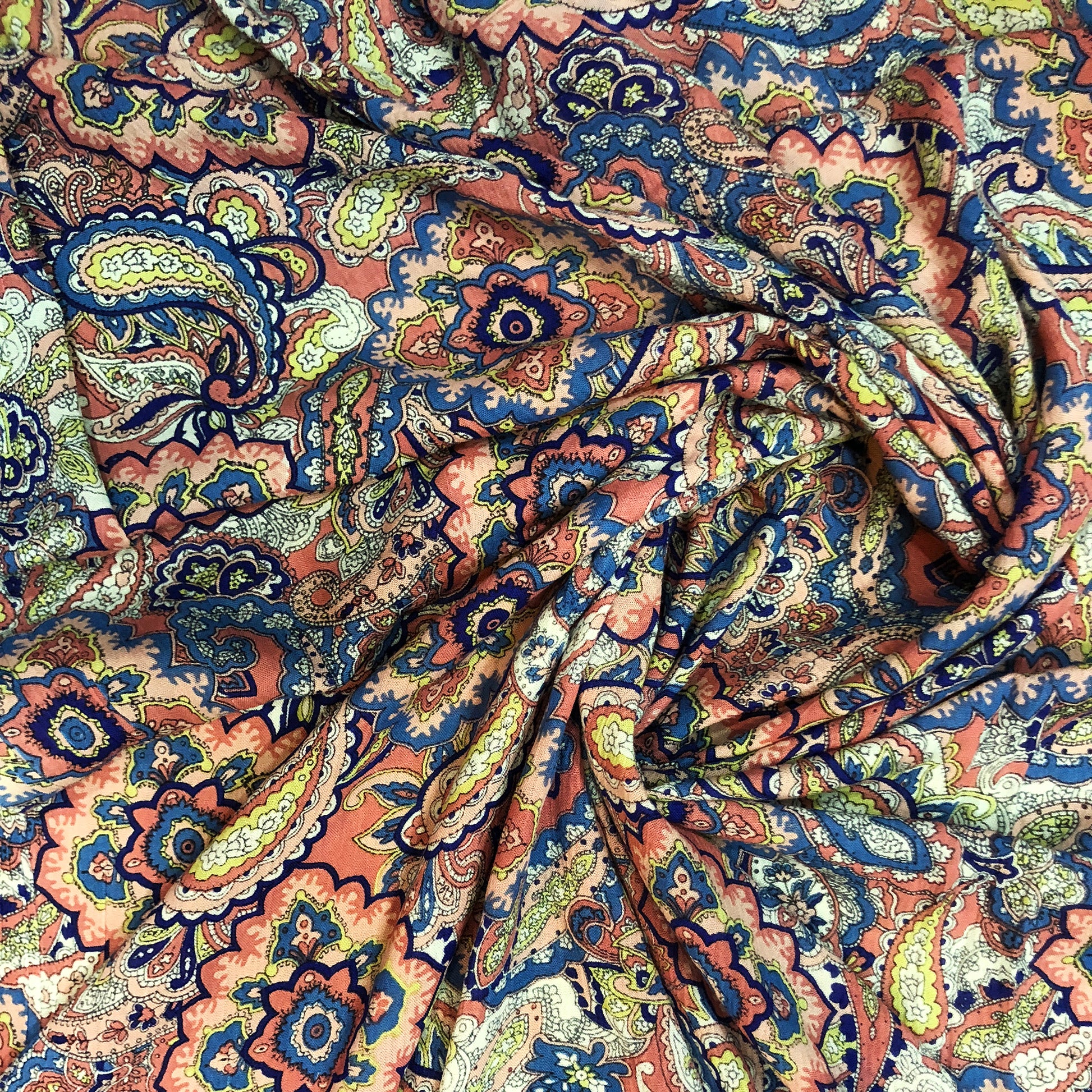 A beautiful kaleidoscopic medley of colouful paisleys in rayon fabric. Stitch a long A-line kurta or an indie dress or wherever your imagination takes you.