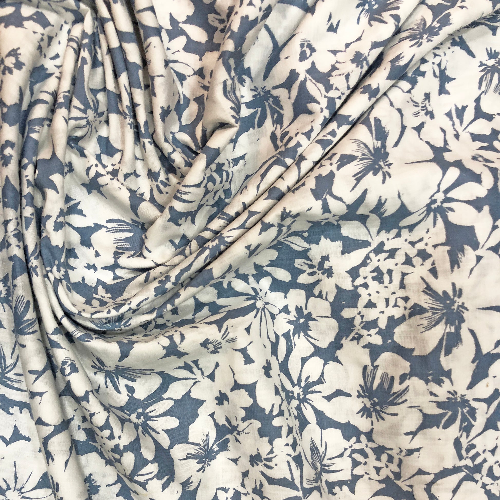 Grey Blue & White Floral Summery Cotton Fabric to make cute tops, shirts and trendy kurtas at affordable rates.