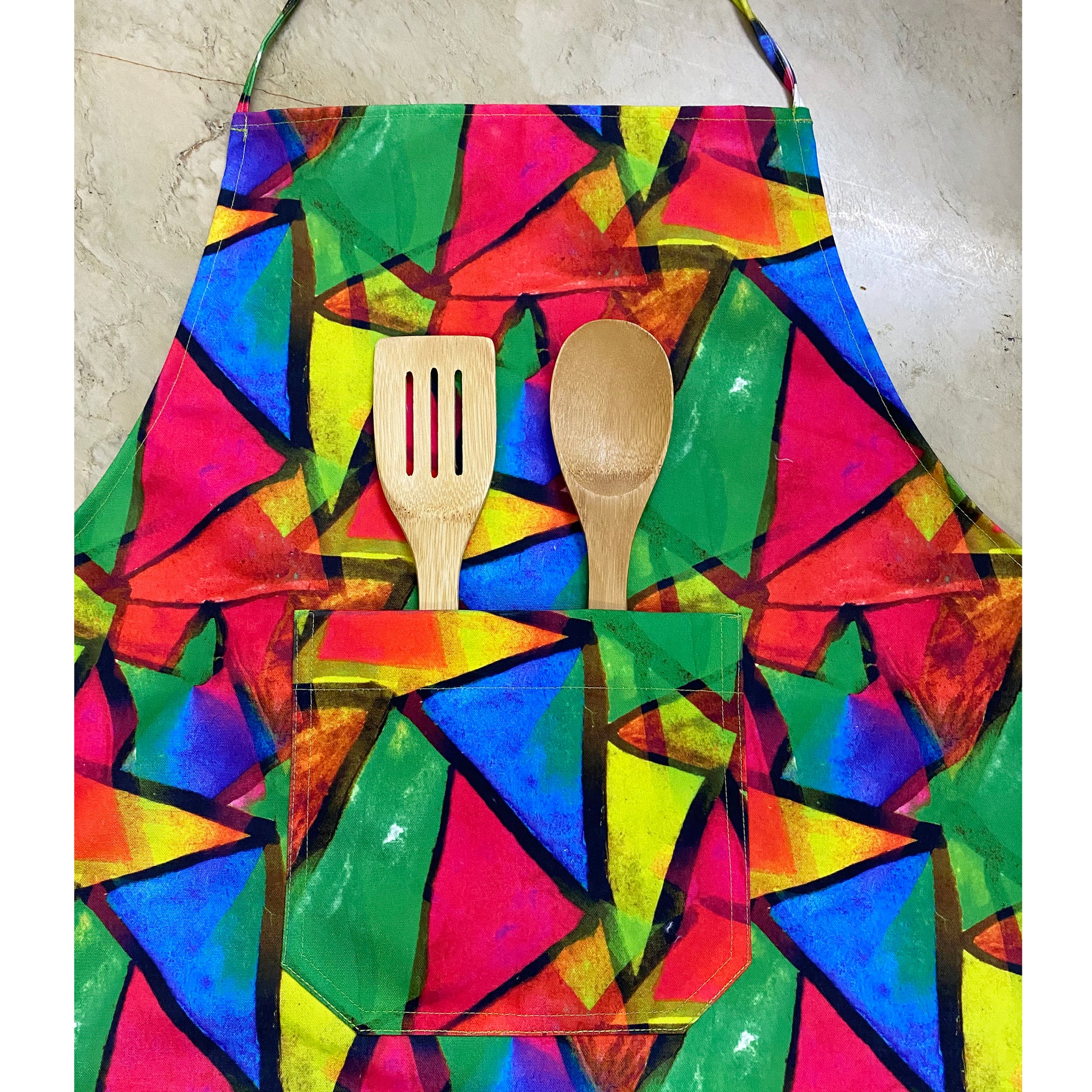 Vibrant apron in quick dry polycotton fabric for the kitchen emperor. This vibrant apron comes with a super practical front pocket and is easy to wash. Now whip your favourite dishes in an easy, fuss free way without worrying about the stains or laundry blues. Happy Cooking!