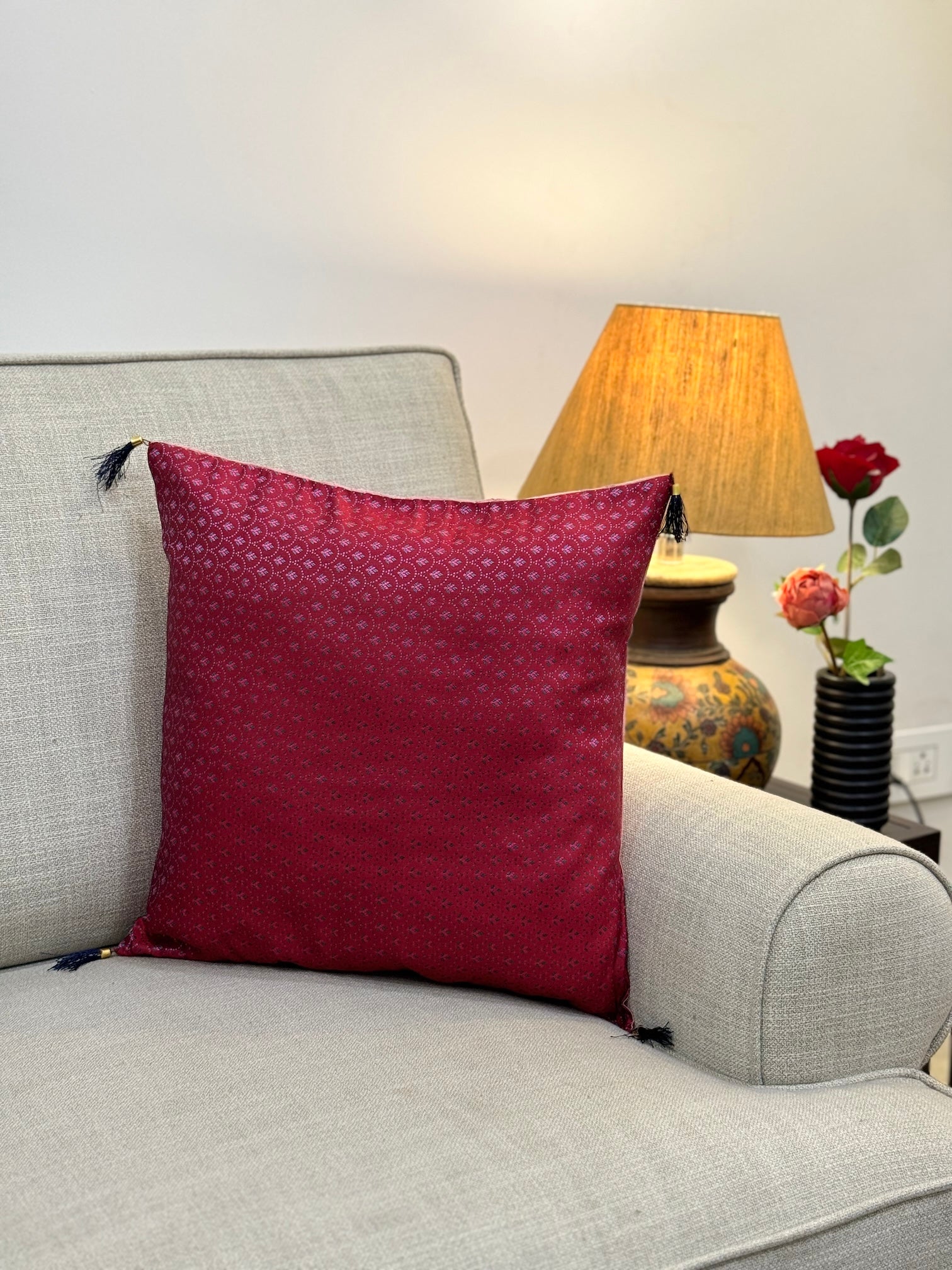 Subtle elegance meets bold colour ✨ Our printed maroon silk cushion cover with a complimenting pink back, adds a perfect touch of sophistication to any space. A classic statement for the Indie home. Available in multiple sizes to choose from, you can get a custom size made too. Just shoot us a mail with your specifications and we'll do the rest.