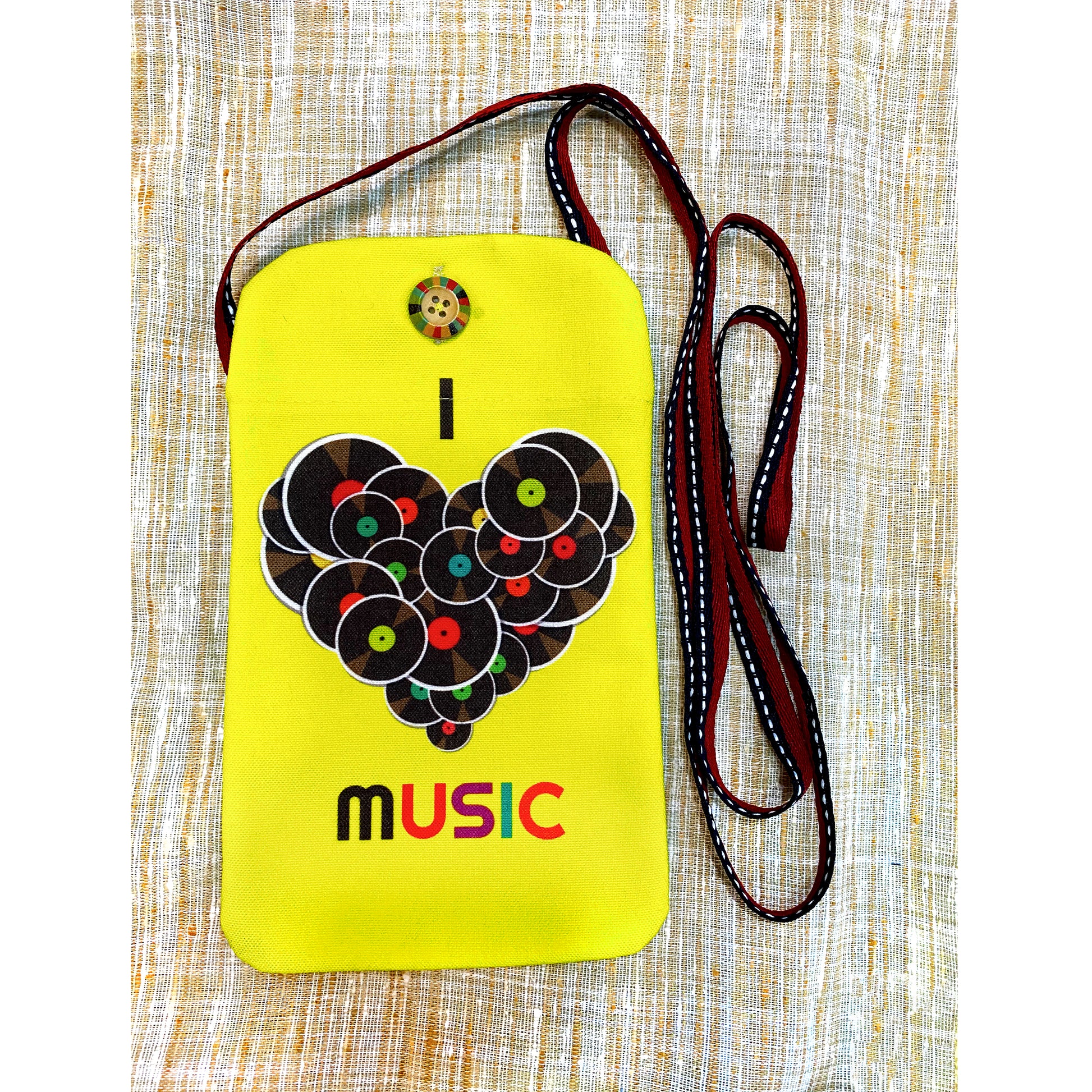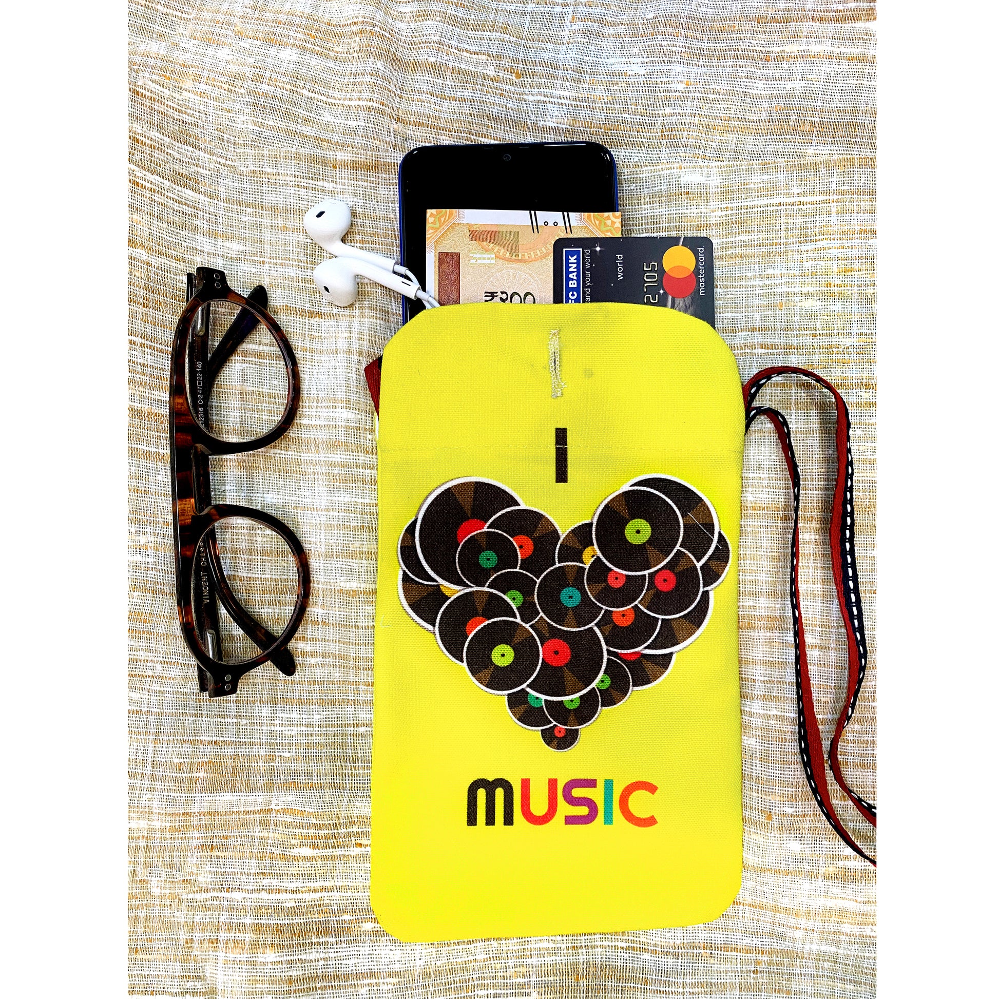 Vibrant yellow utility pouch for all those evening walks or quick trips to the convenience store. This practical to-go-bag comes with long strap and easily accommodates your cell-phone, cards, i-pod, cash , some tissues and earphones. Now walk hands-free with this light-weight fabric pouch made in India.