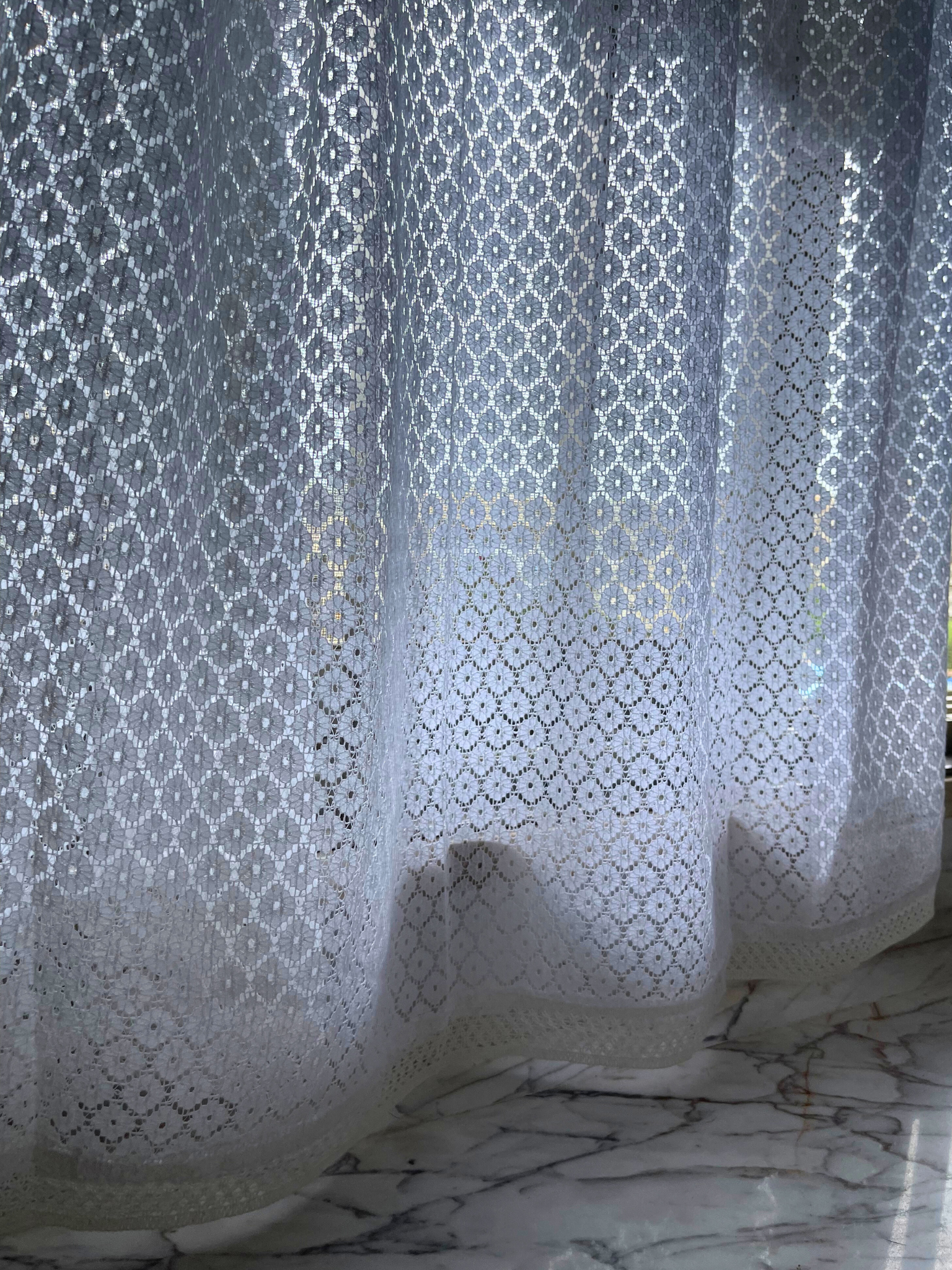Enhance your home with our ready-made sheer white net and lace curtain, designed to bring elegance and softness to any space. These thin window curtains online, in French Riviera style, allow natural light to flow through while maintaining a sense of privacy. Crafted from high-quality fabric, our net curtains create a light and airy feel, making them perfect for a serene atmosphere. Ideal as living room sheer curtains, they add a stylish touch to your décor. Available in multiple sizes, our door and window net curtains fit a variety of window dimensions. Looking for a custom fit? Contact us at hi@thefeelgoodstudio.in, and we’ll tailor the perfect see-through curtains for your home. Shop sheer curtains online today!