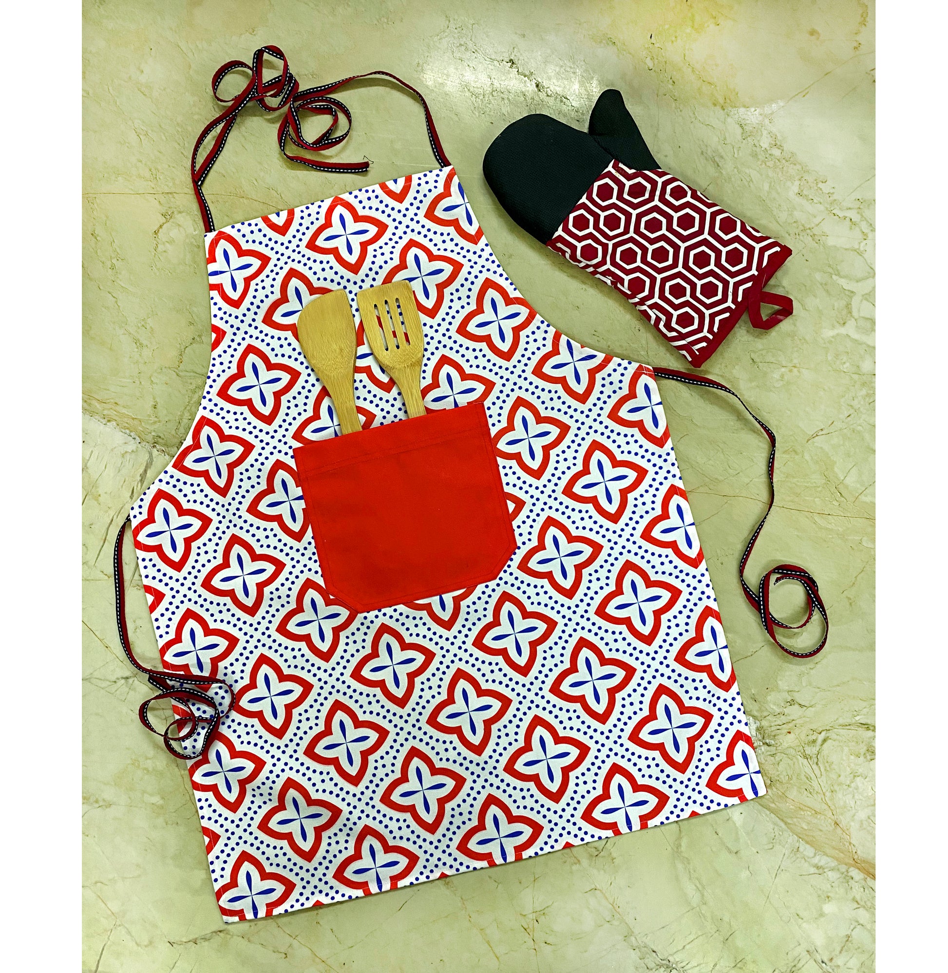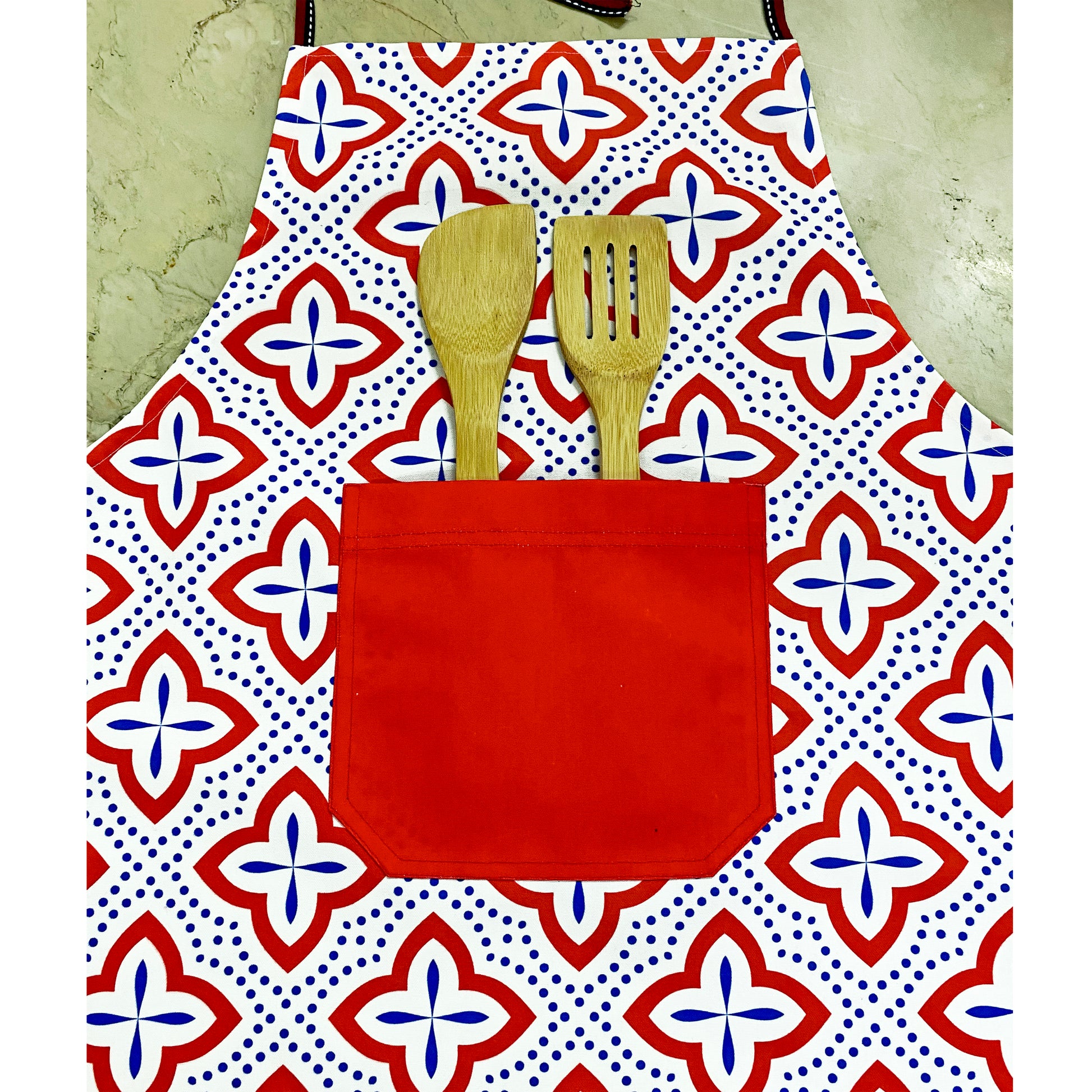 Happy and vibrant floral motif printed apron with utility pocket.This quick-dry apron is comfy, breathable and a sweet addition to your chef life.