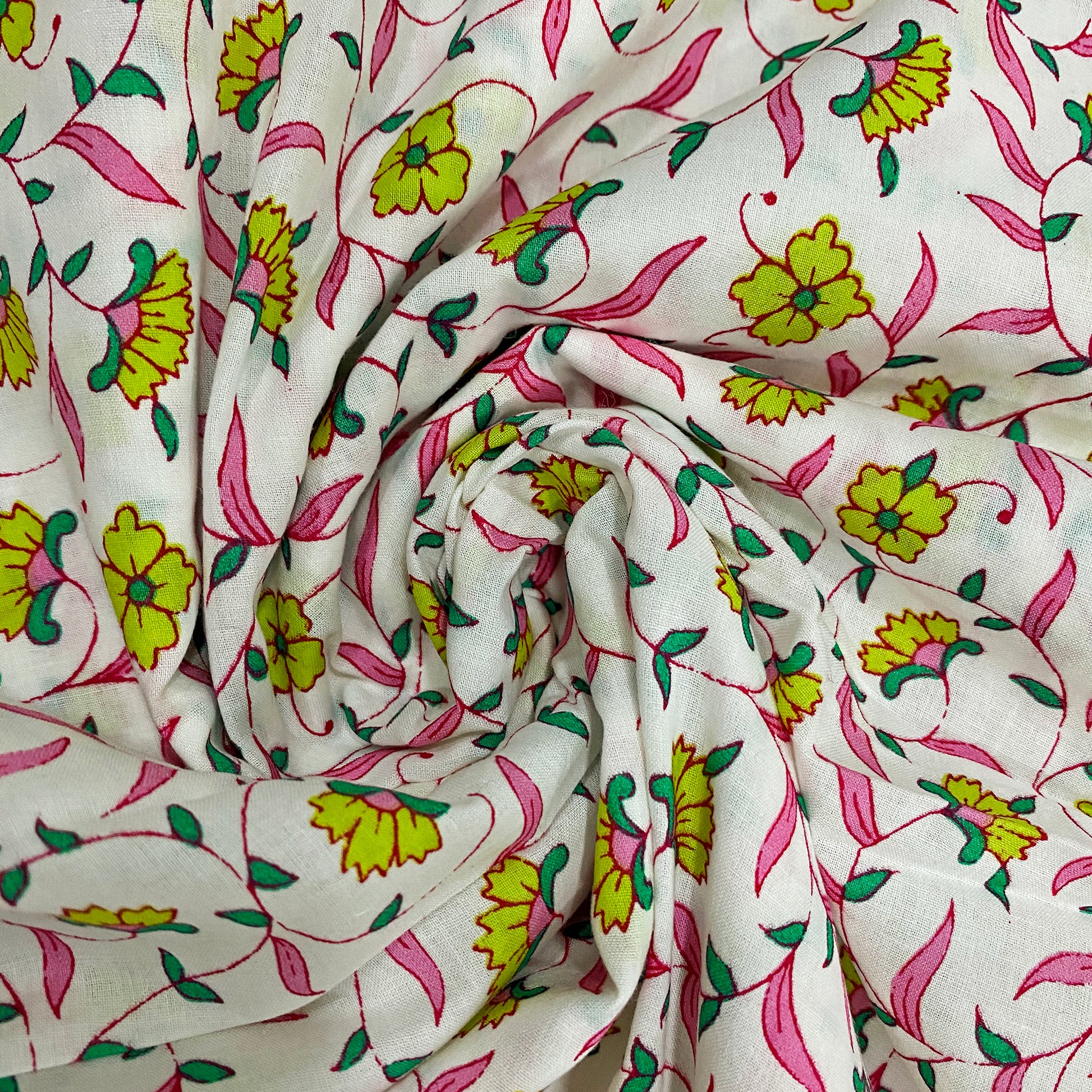 Soothing Soft Summery Cotton floral print to make cute tops, airy kurtas, flared pants and shirts.