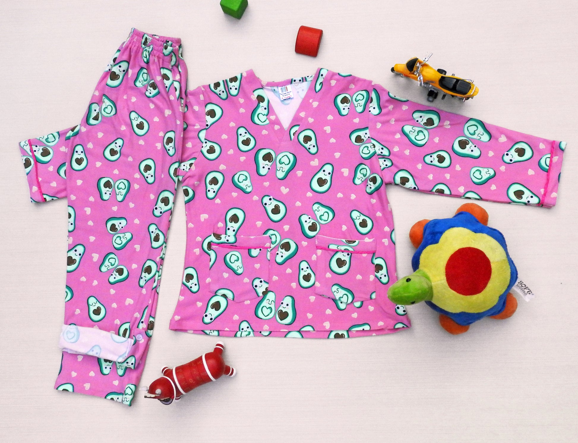 A super cute avocado unisex nightsuit for your little one in soft cotton hosiery fabric. It comes with a practical button roll up feature in all pajamas upto the age of 5.