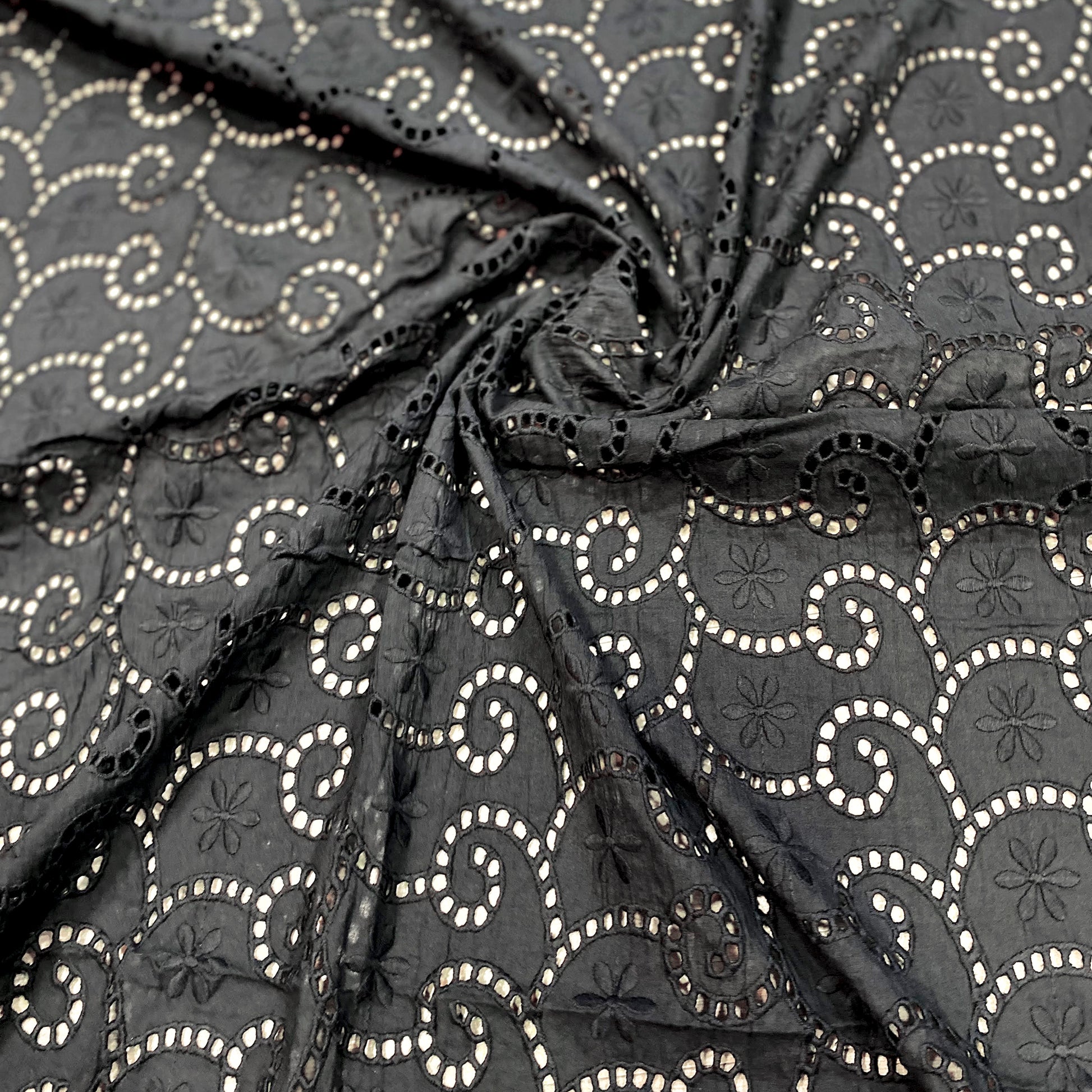 Beautiful black hakoba eyelet fabric for beautiful blouses, summery dresses, chic salwar pants, Indie cushions and much more.