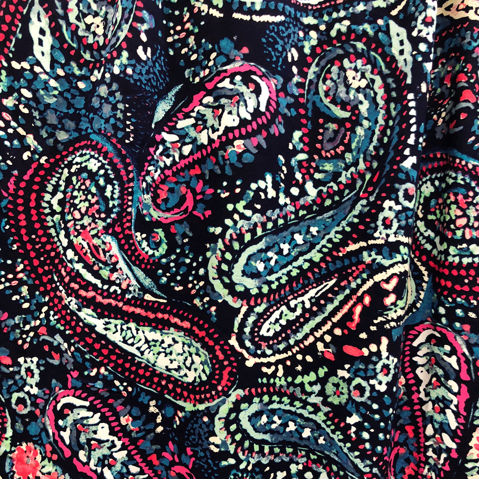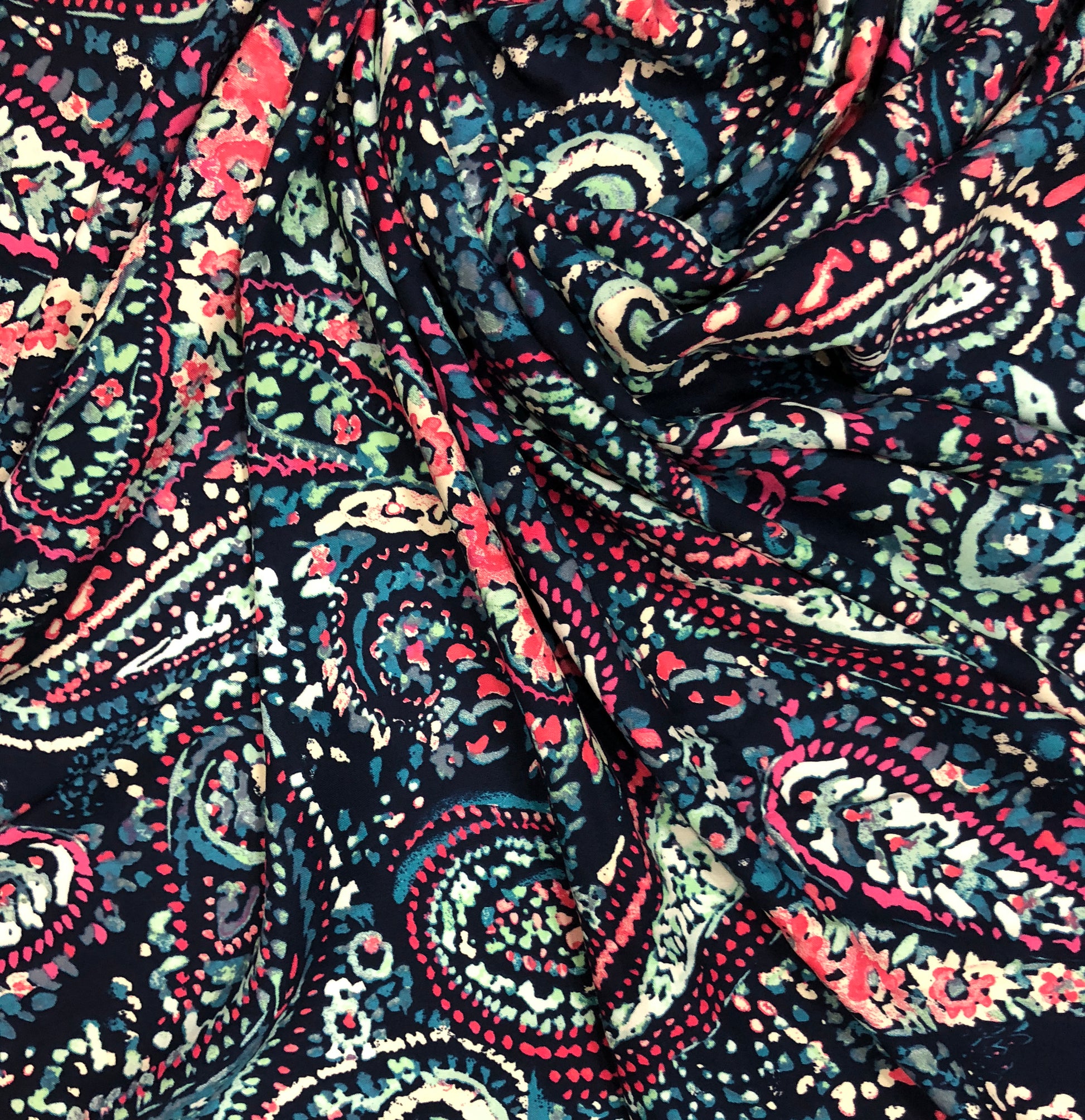 A vivid paisley print in rayon , handcrafted in India. Make a chic summer dress, a casual trippy shirt or a beautiful kurta or wherever your imagination takes you.