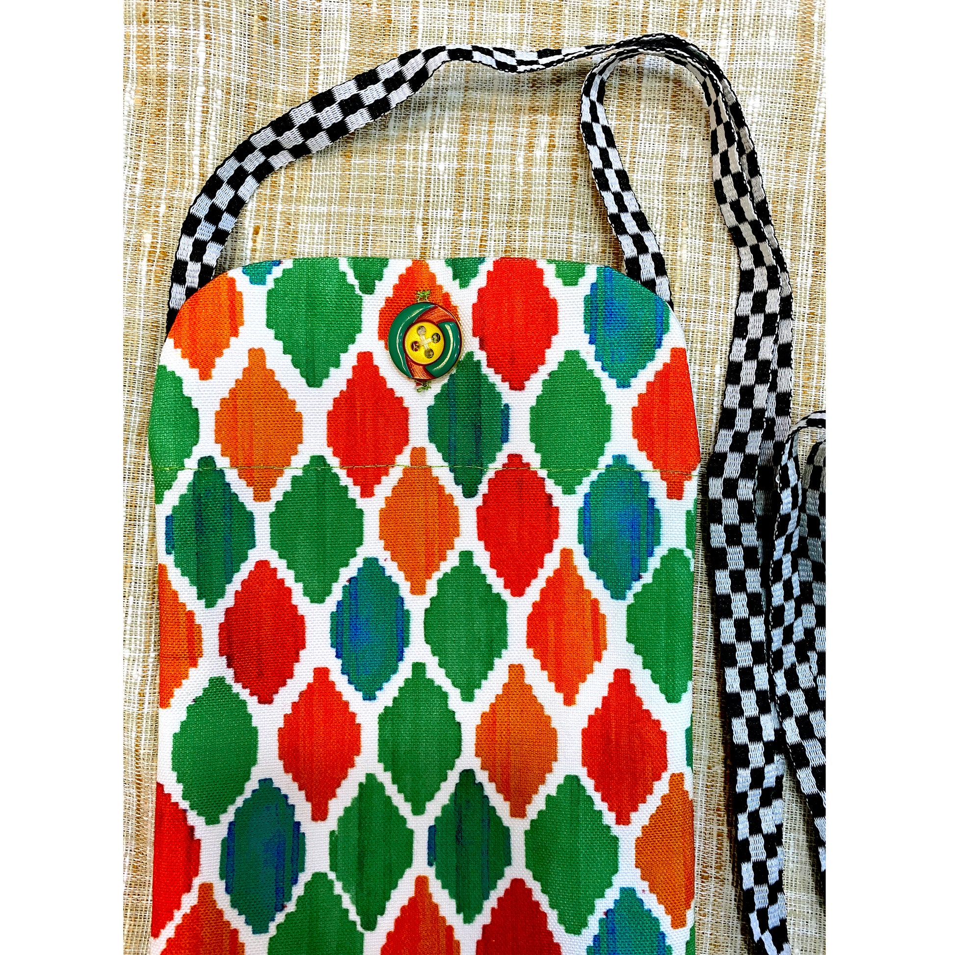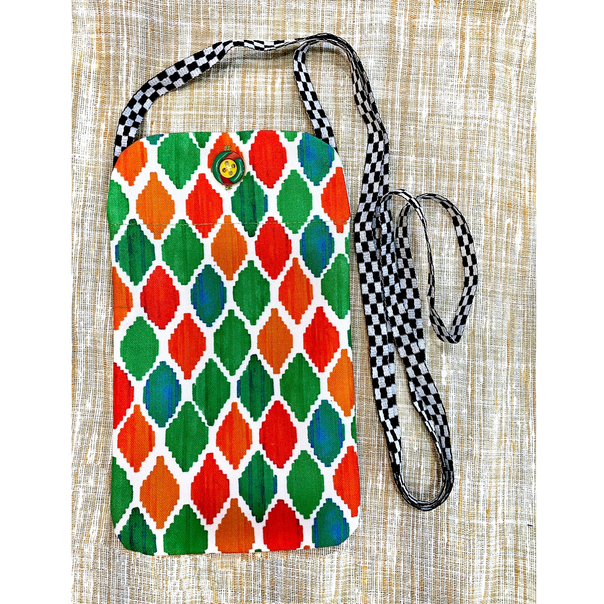 Rajmahal window art inspired utility pouch from the land of Rajputs; for all those evening walks or quick trips to the convenience store. This practical to-go-bag comes with a sling and easily accommodates your cell-phone, cards, i-pod, cash , some tissues and earphones. Now walk hands-free with this light-weight fabric pouch made in India.