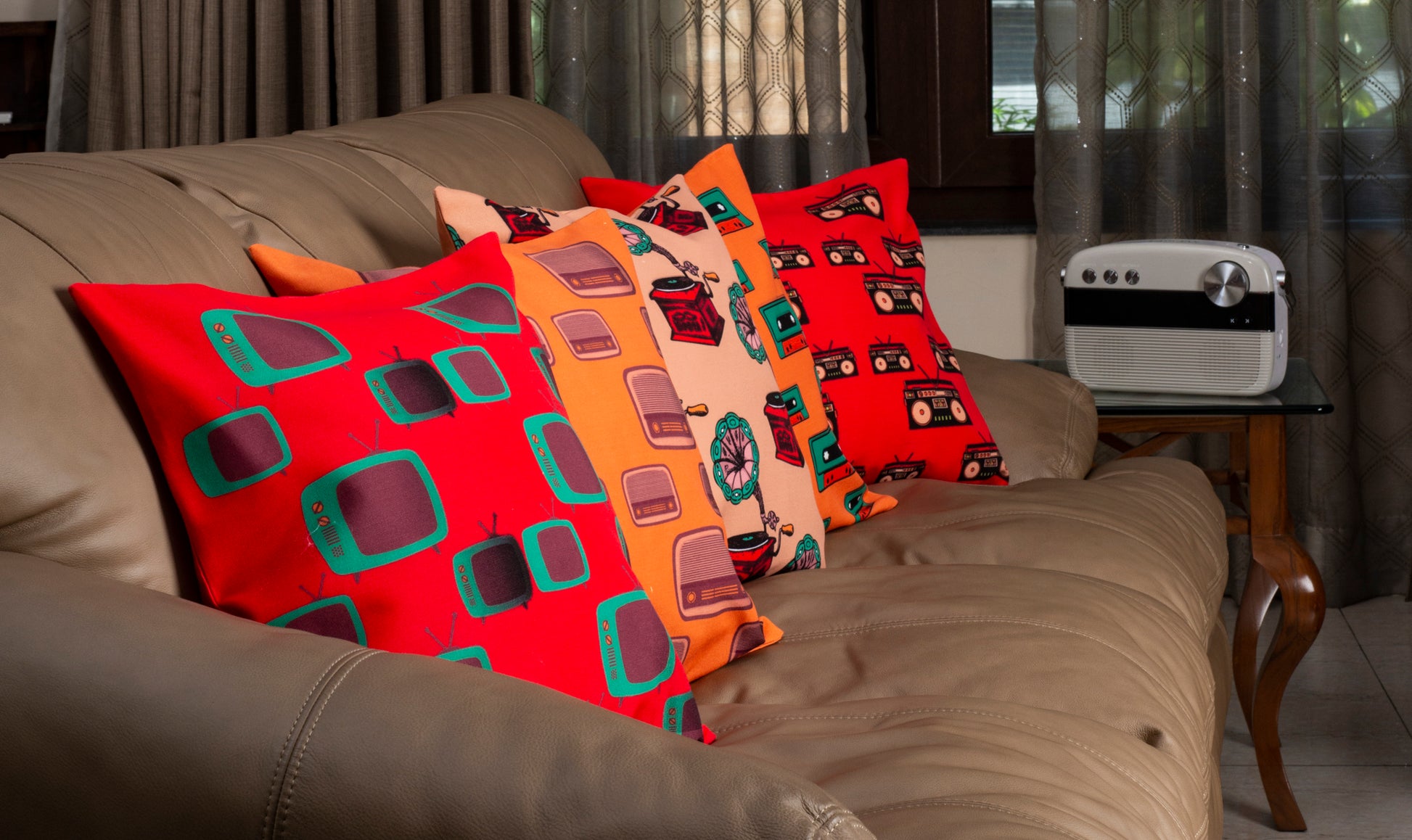 Give a cool, funky twist to your couch by placing retro themed cushions in your living room. Available in different sizes, our cushion covers are a super soft blend of cotton and polyester; making your home a truly feel good place.