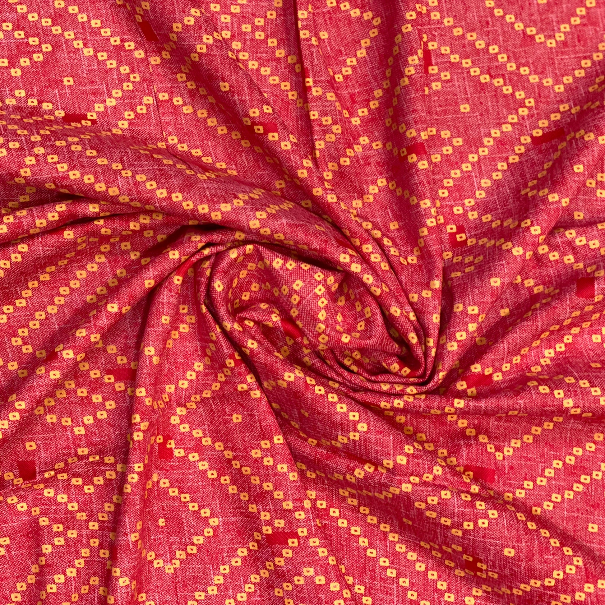 Rust & Yellow Bandhni Soft Cotton Fabric