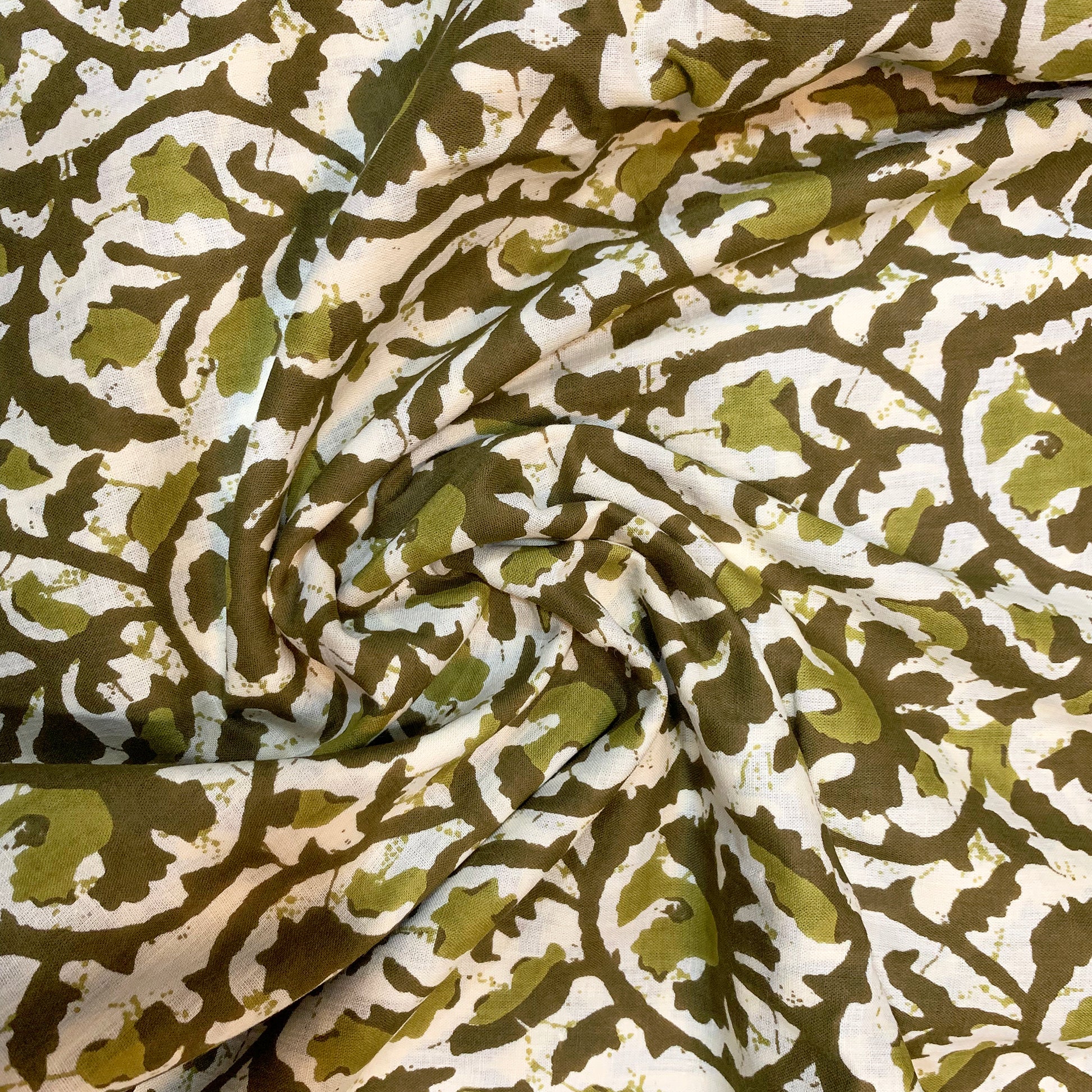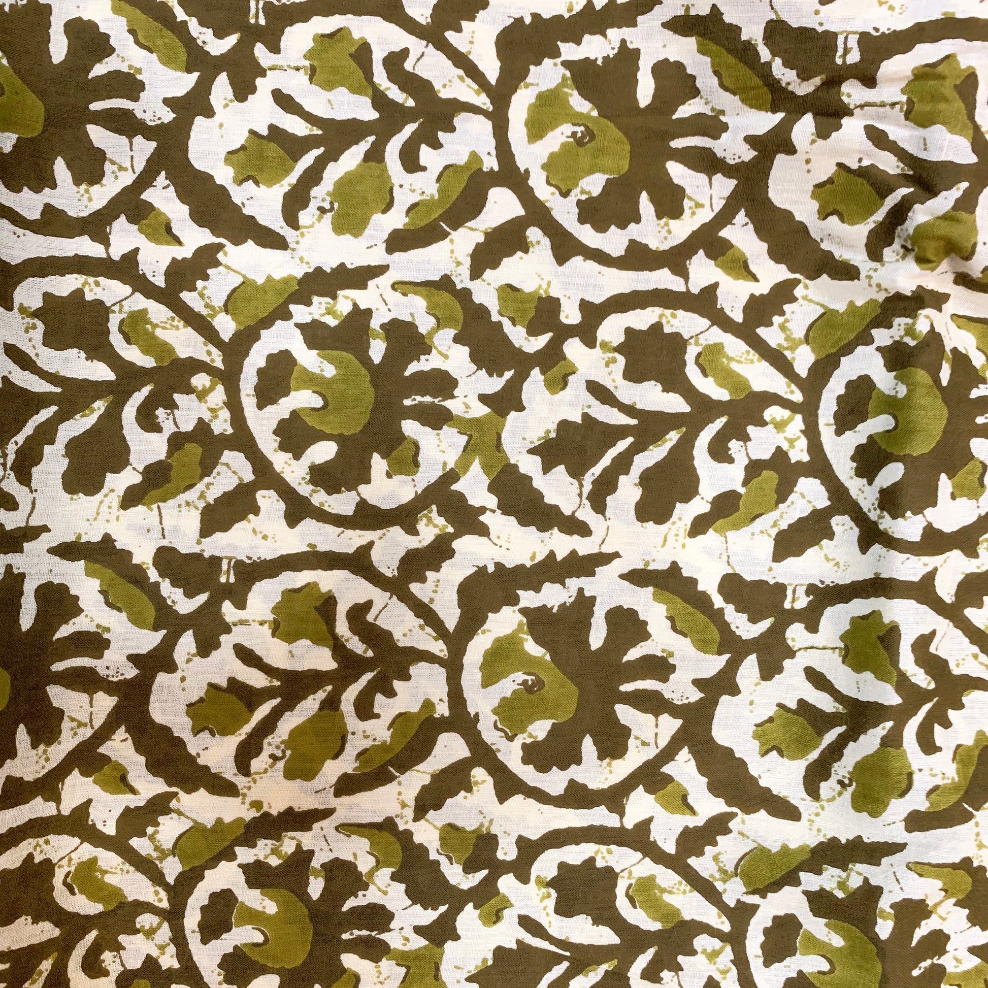 Summery green floral print in breathable cotton fabric to make light, soothing kurtas or pants to beat the heat.