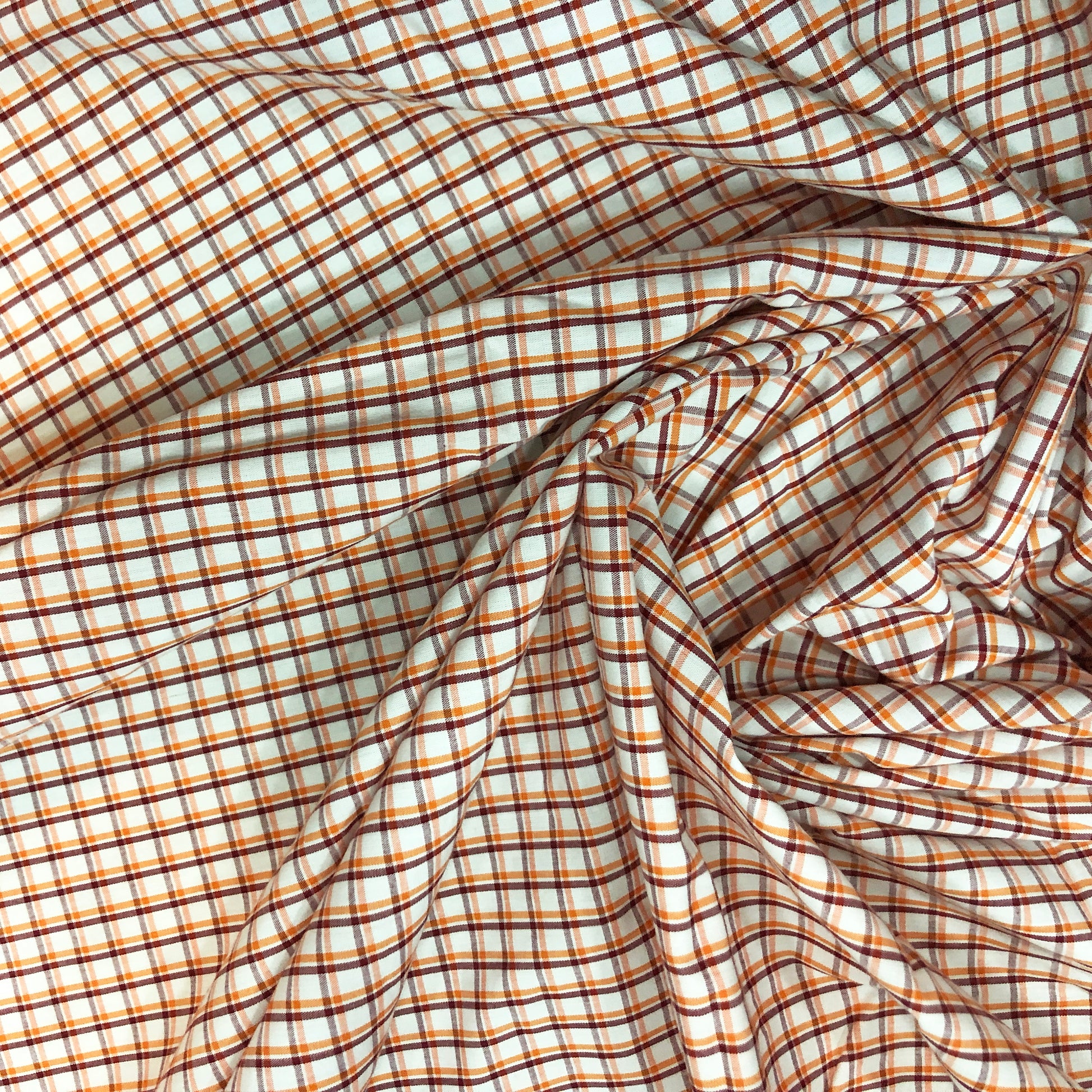 Summery Cotton Checkered Print In Deep Red, Orange & White.