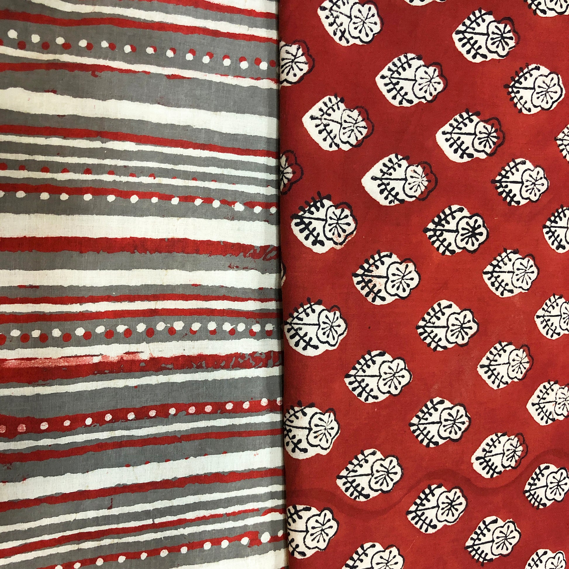 Summery Red & Grey Cotton Fabric Suit Length