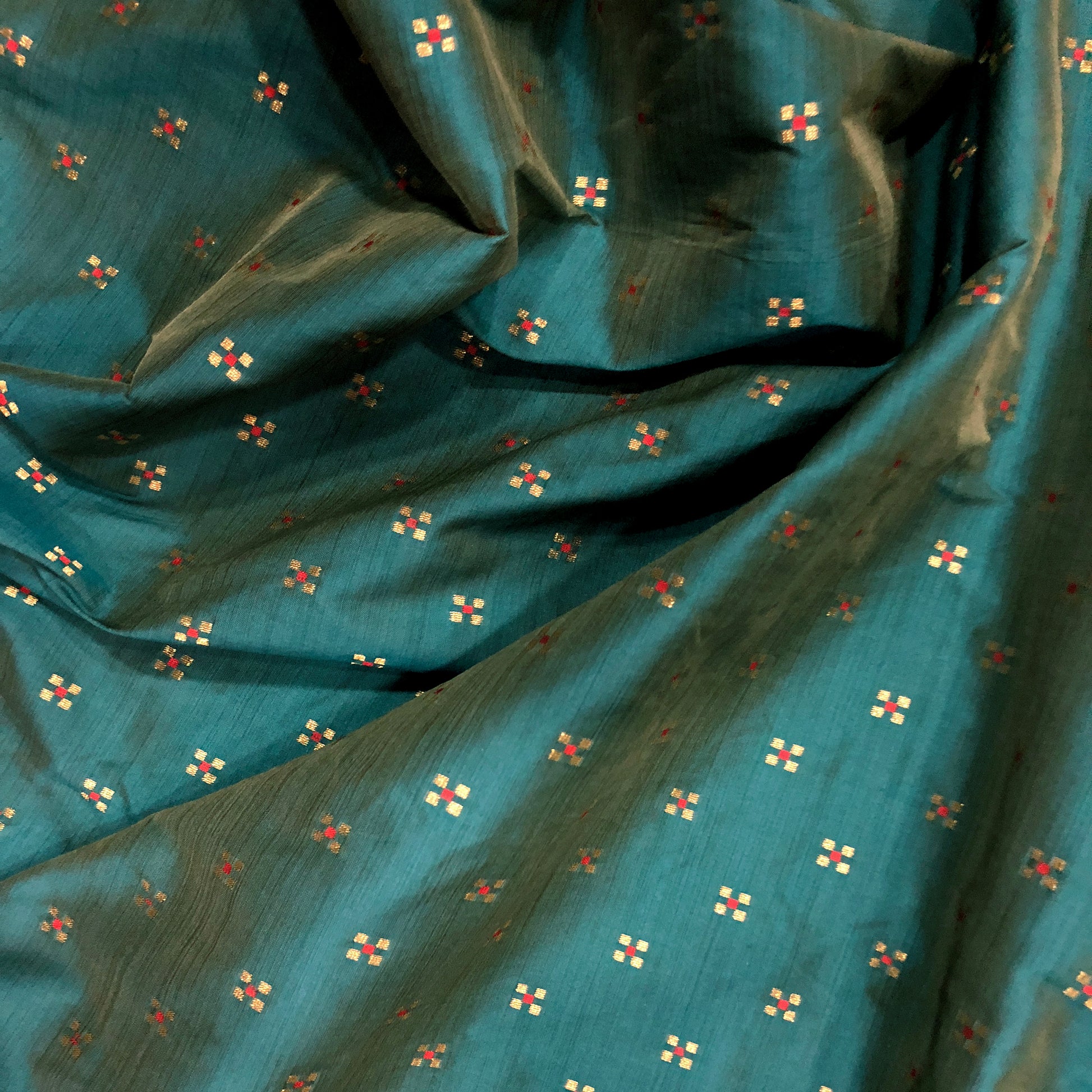 A traditional teal blue brocade to add absolute luxury to your wardrobe.