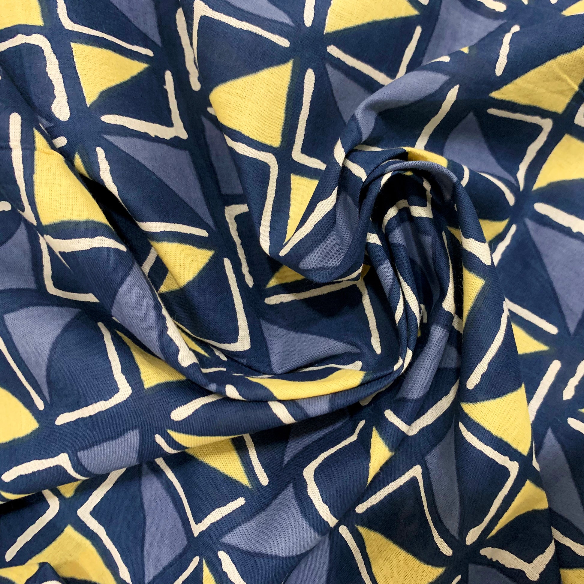 Unique triangle printed boho cotton fabric. Make a nice summer dress or beautiful straight pants or a funky 70s inspired shirt.
