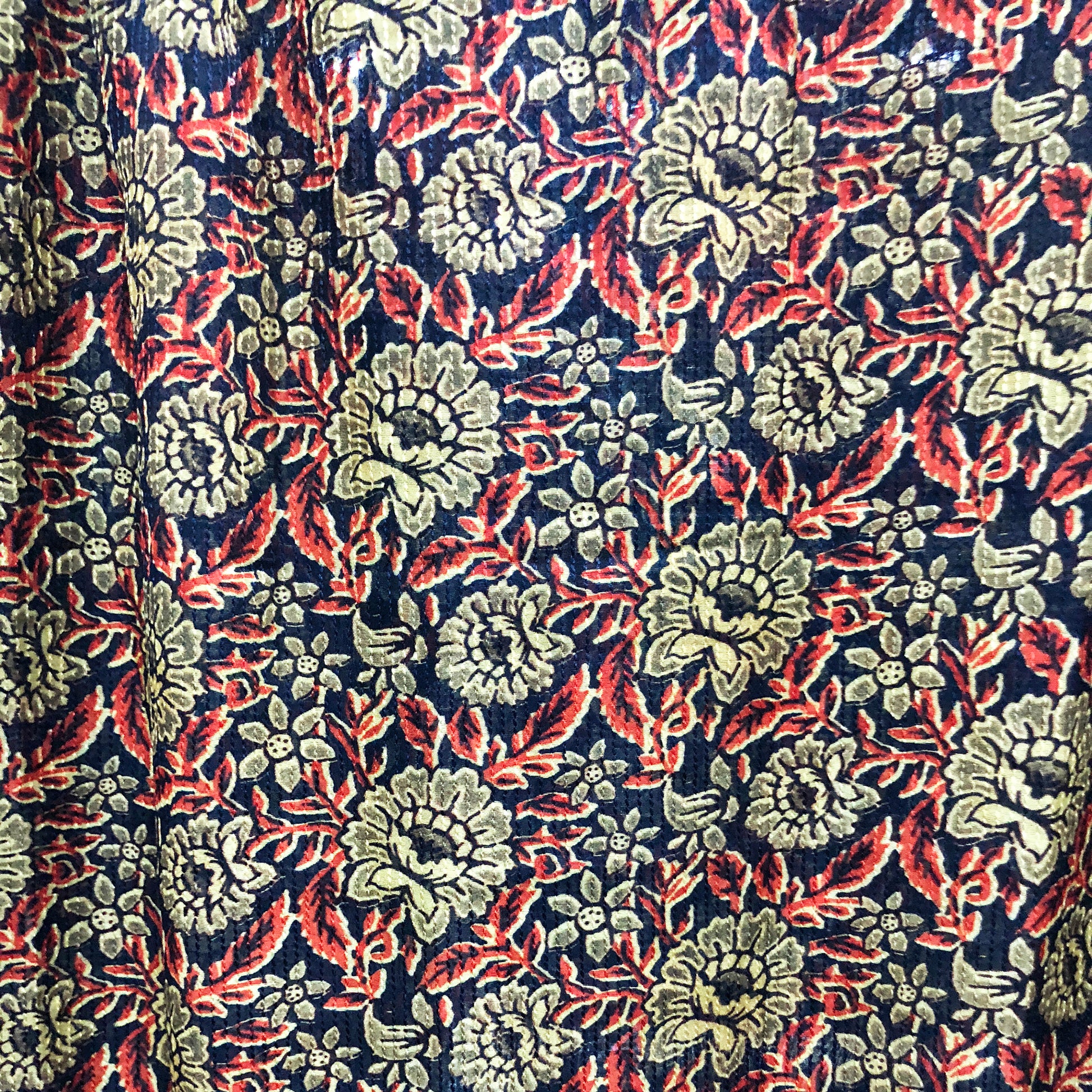 A traditional and festive gold, red & blue tusser kantha fabric, handcrafted in India. Make a chic maxi dress out of it or a beautiful festive kurta or wherever your imagination takes you.