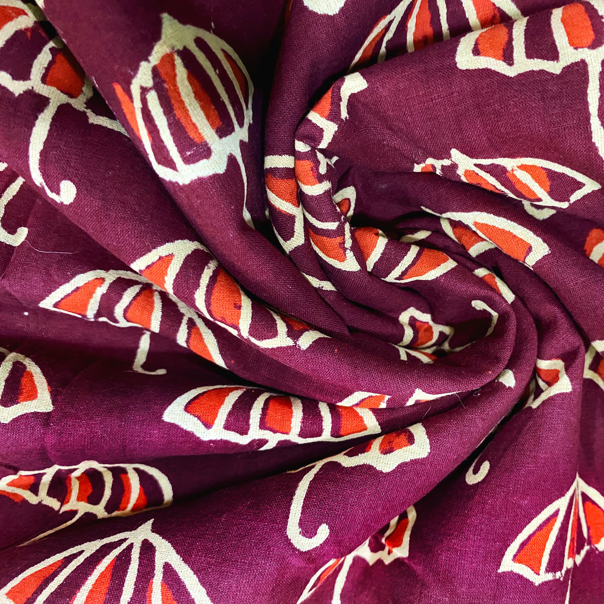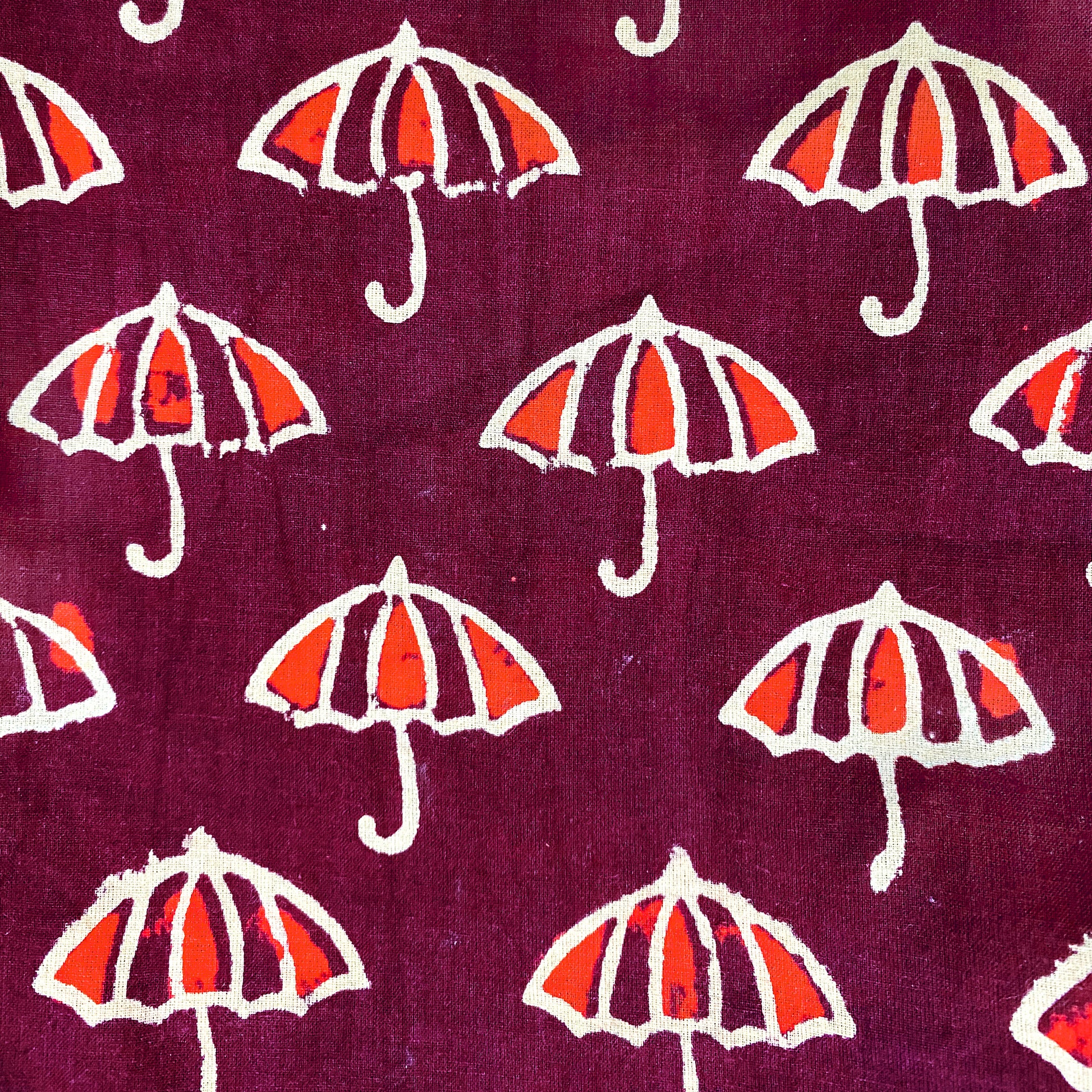 Cute summery umbrella print hand block Cotton Fabric to make cute tops, summery kurtas , relaxed indie dresses, cotton shirts and indie pants, etc.