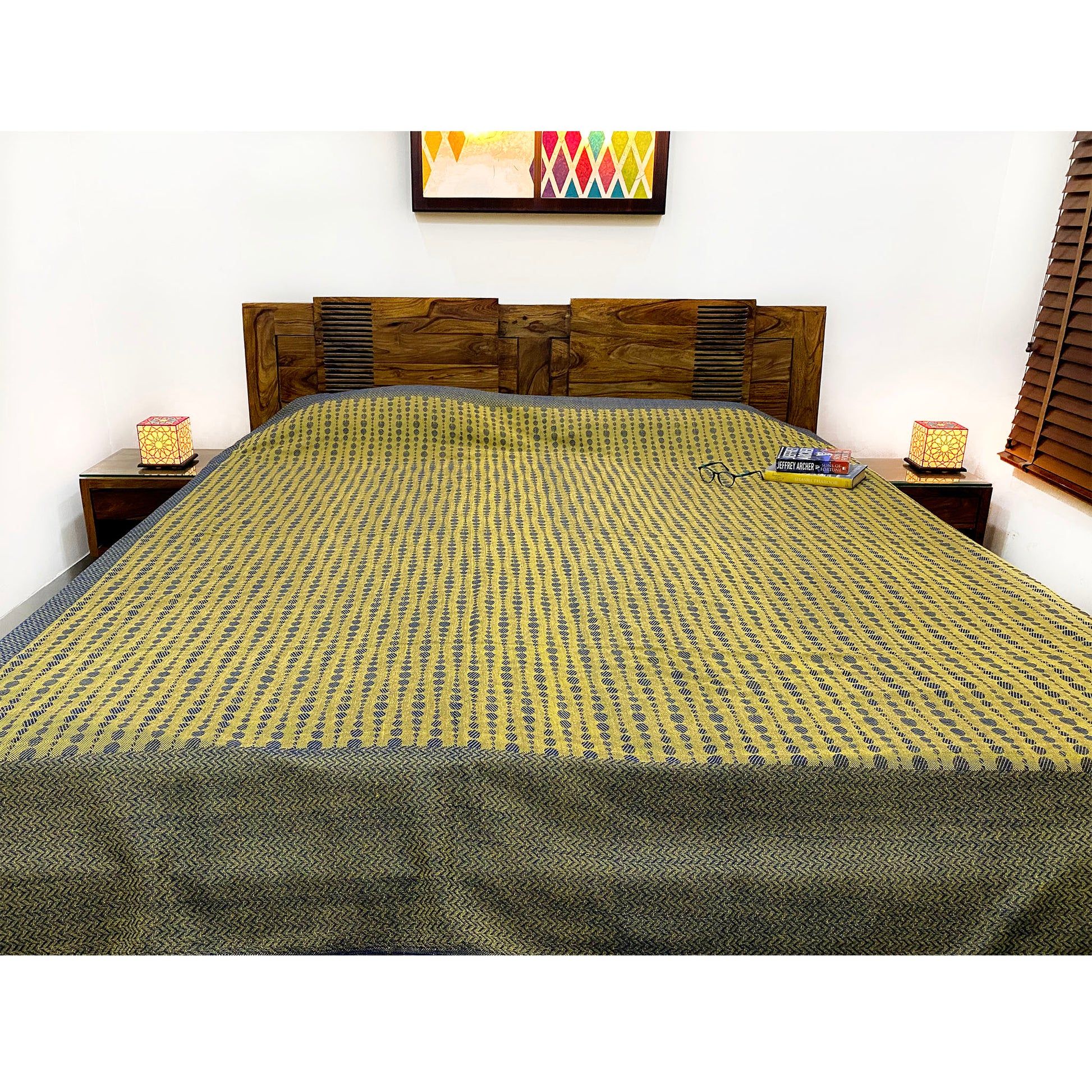 Reversible Kaffir Lime Handloom Bed Cover