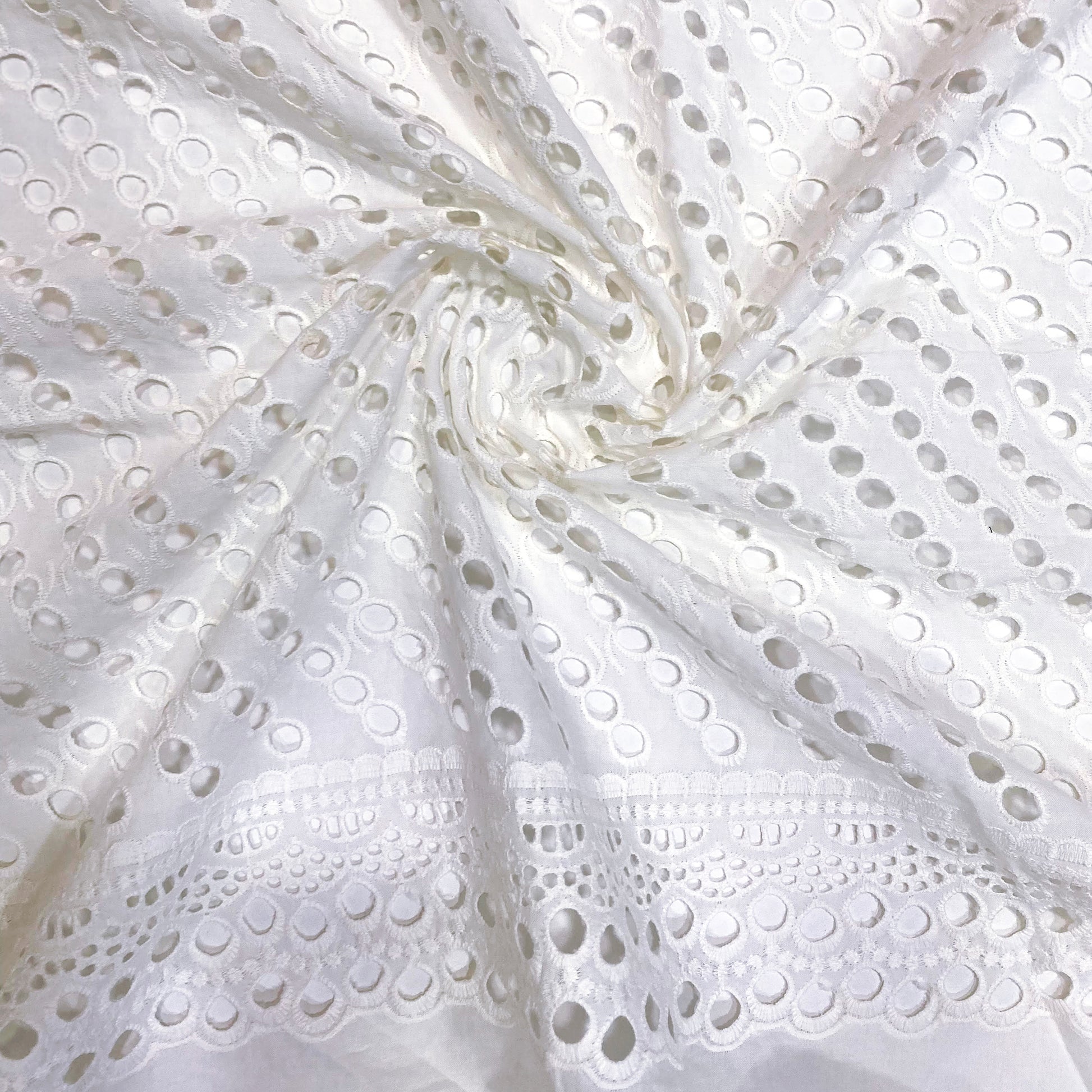 Beautiful ivory white hakoba eyelet fabric with paisleys all over for beautiful kurtas, chic salwar pants, Indie cushions and much more.